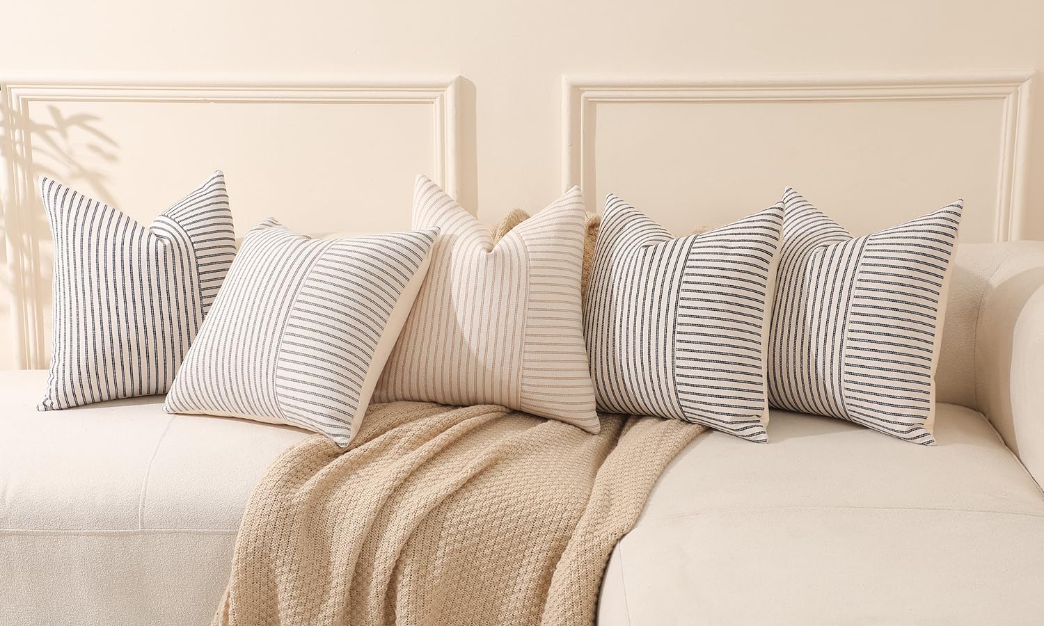 - 【Patchwork Design】Refresh the look of a sofa or armchair with this striped pillow covers. this fall pillow covers instantly brightens your furniture. On the back, a solid linen enables you to change the look of your room with a quick flip.