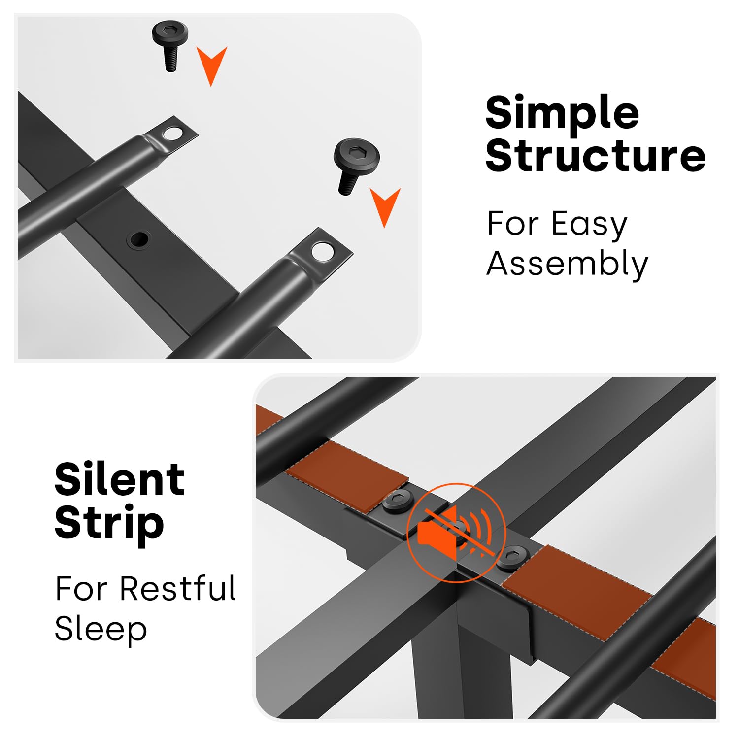 - Goodbye to Squeaks: Silent foam tape and embedded design of queen size bed frame to create a quiet comfortable bedroom environment
