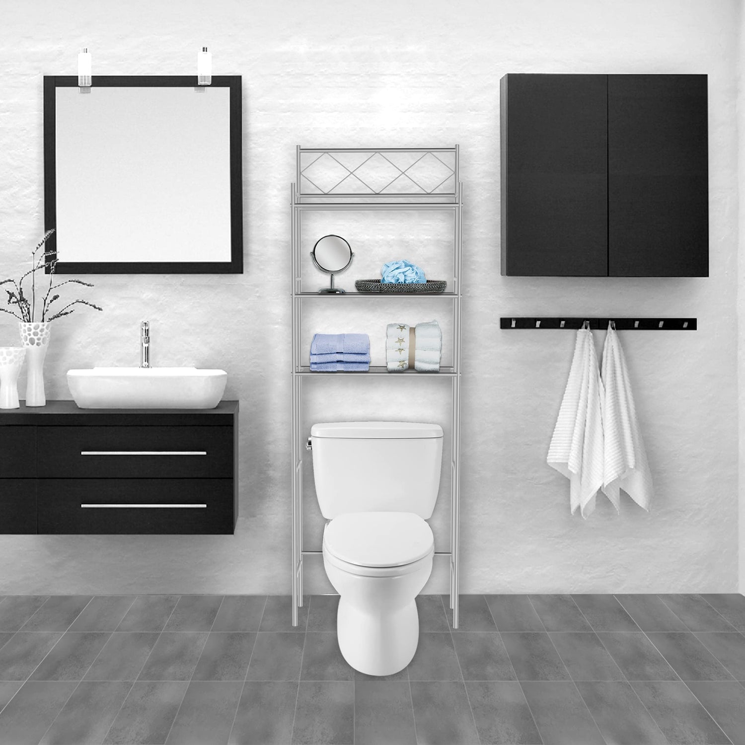 J&V TEXTILES 3-Shelf Bathroom Organizer Over The Toilet, Bathroom Spacesaver (Silver)
