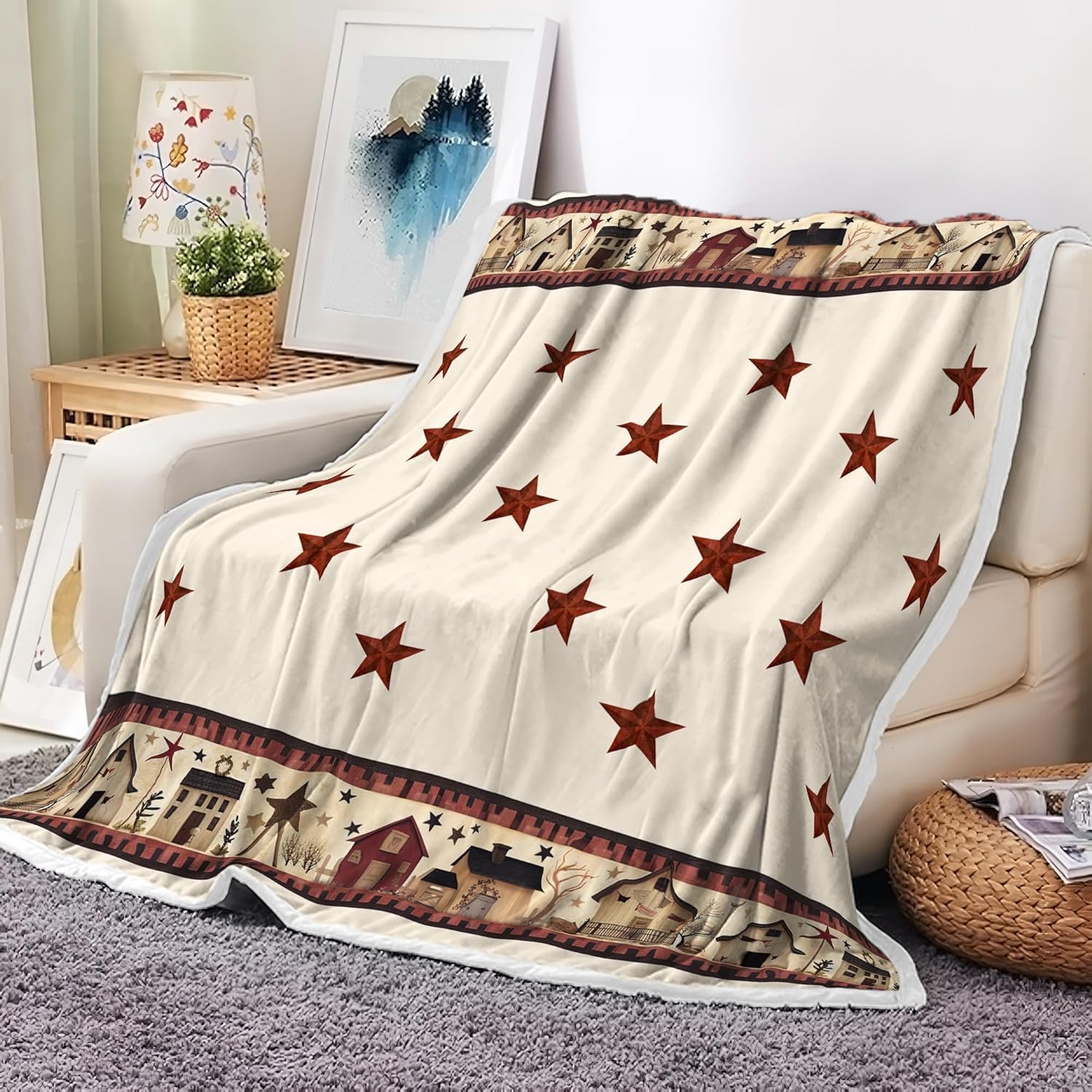 JAWO Rustic Country Throw Blankets, Primitive Barn Star Cozy Warm Bed Couch Blanket, Christmas Farmhouse Theme Fleece Flannel Throws to Decorate The Room and Bedroom 50X60IN