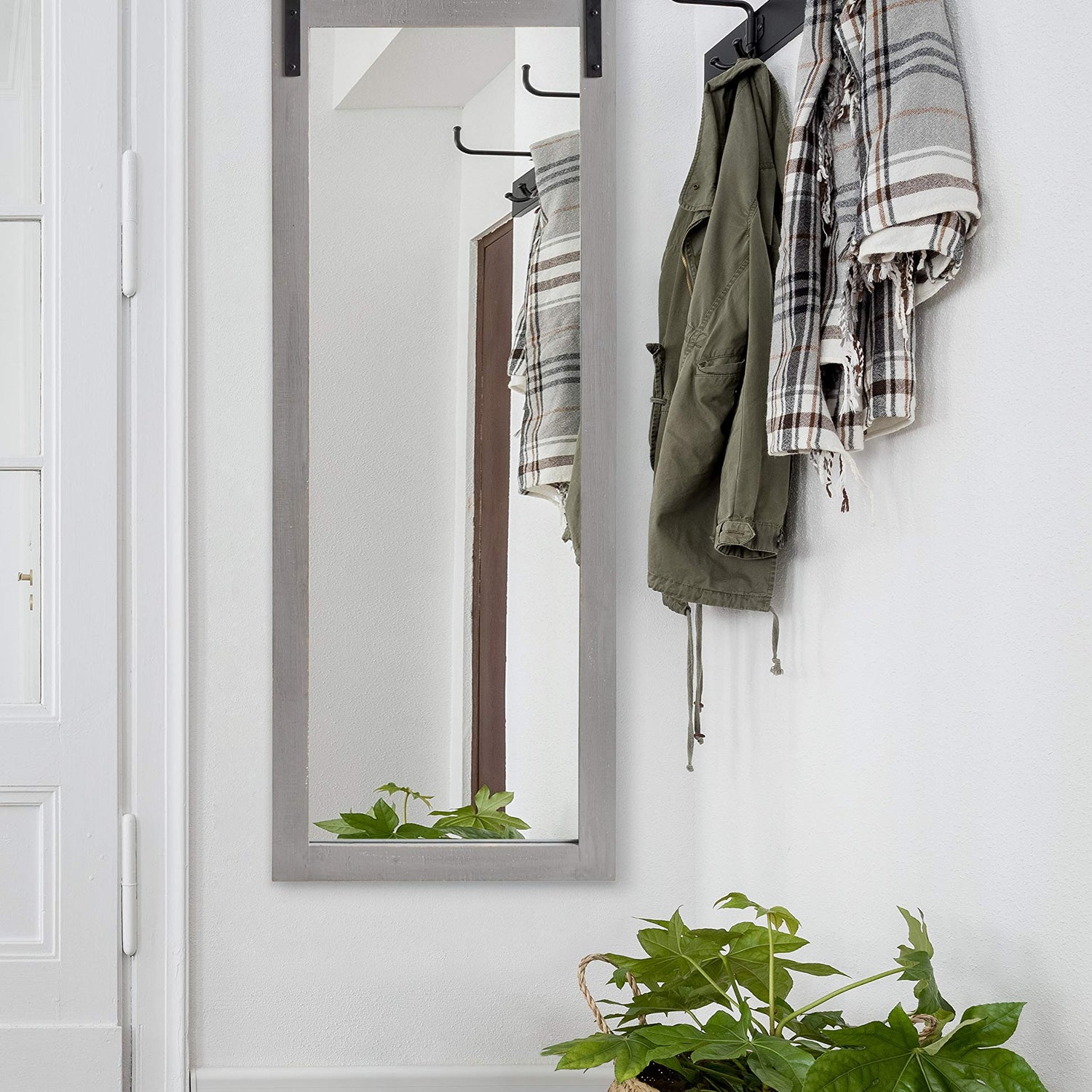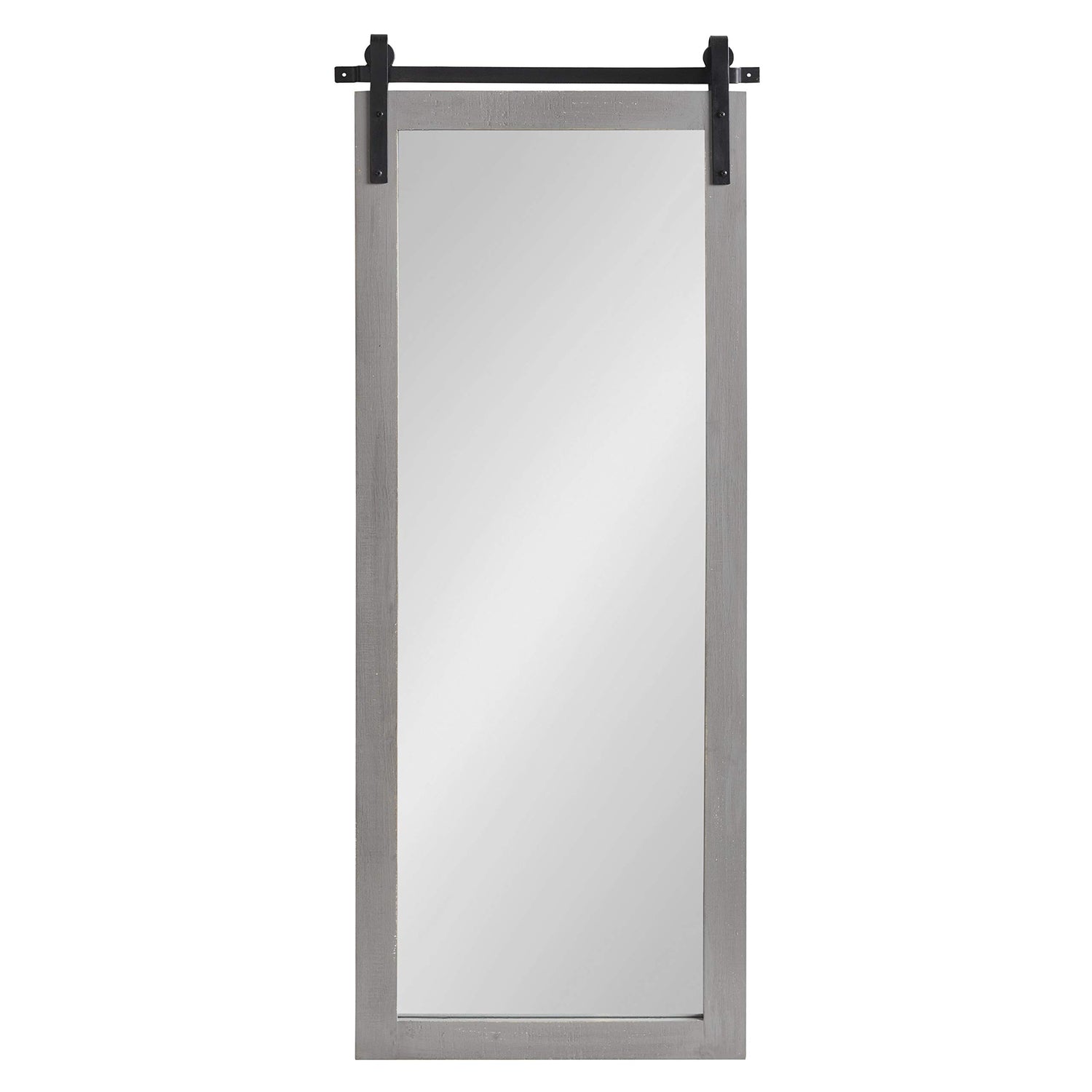 Kate and Laurel Cates Farmhouse Wood Framed Panel Mirror, 18 x 50, Gray, Barn Door-Inspired Rustic Mirrors for Wall