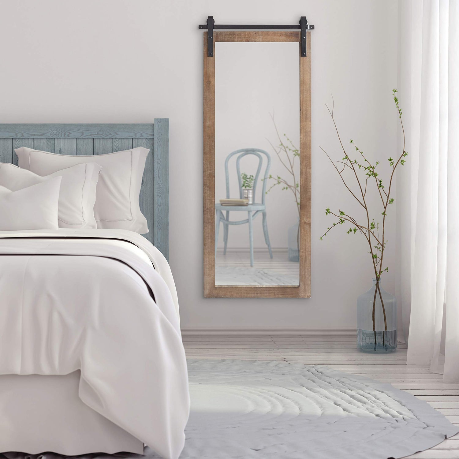 Kate and Laurel Cates Farmhouse Wood Framed Wall Mirror, 18 x 50, Rustic Brown, Barn Door-Inspired Rustic Mirrors for Wall