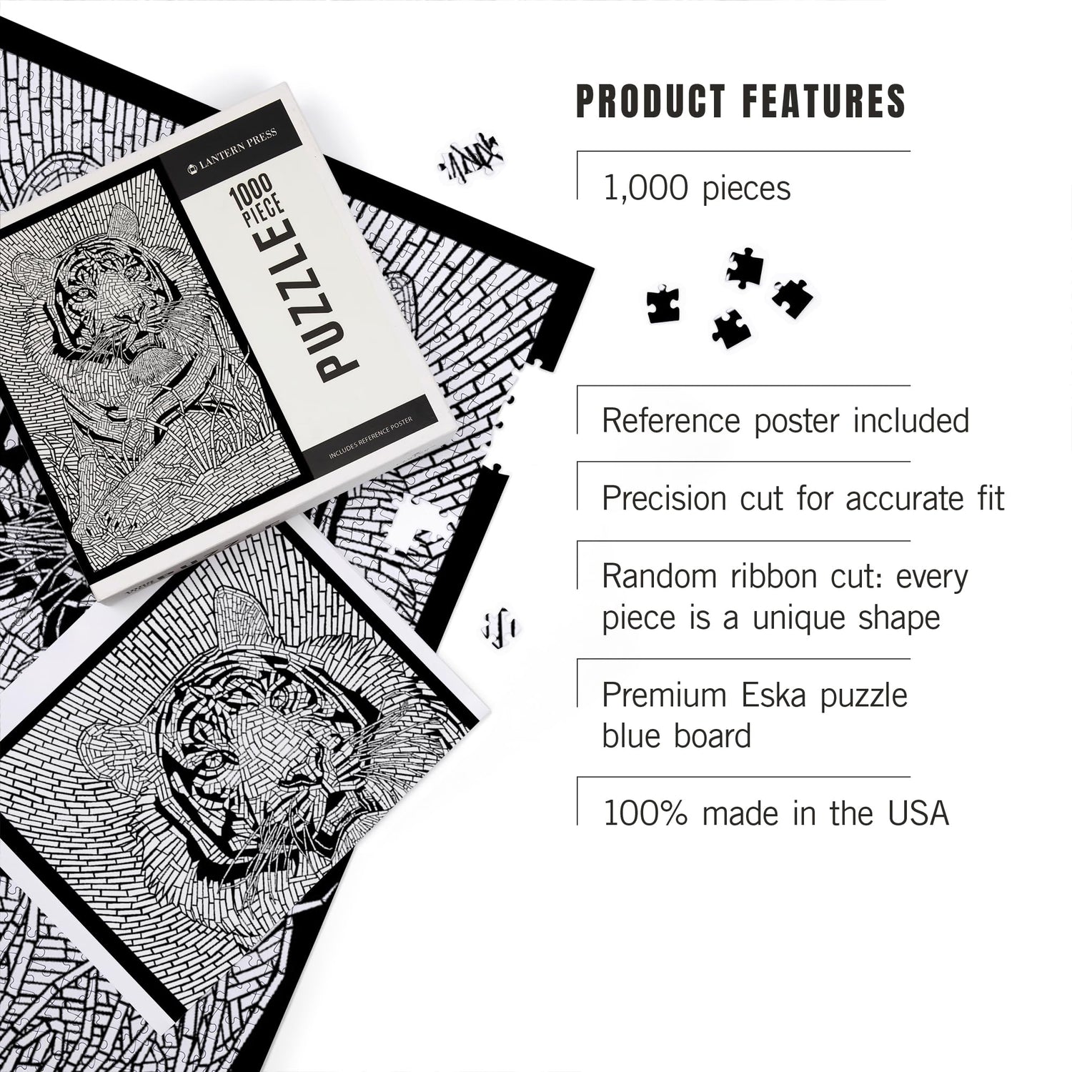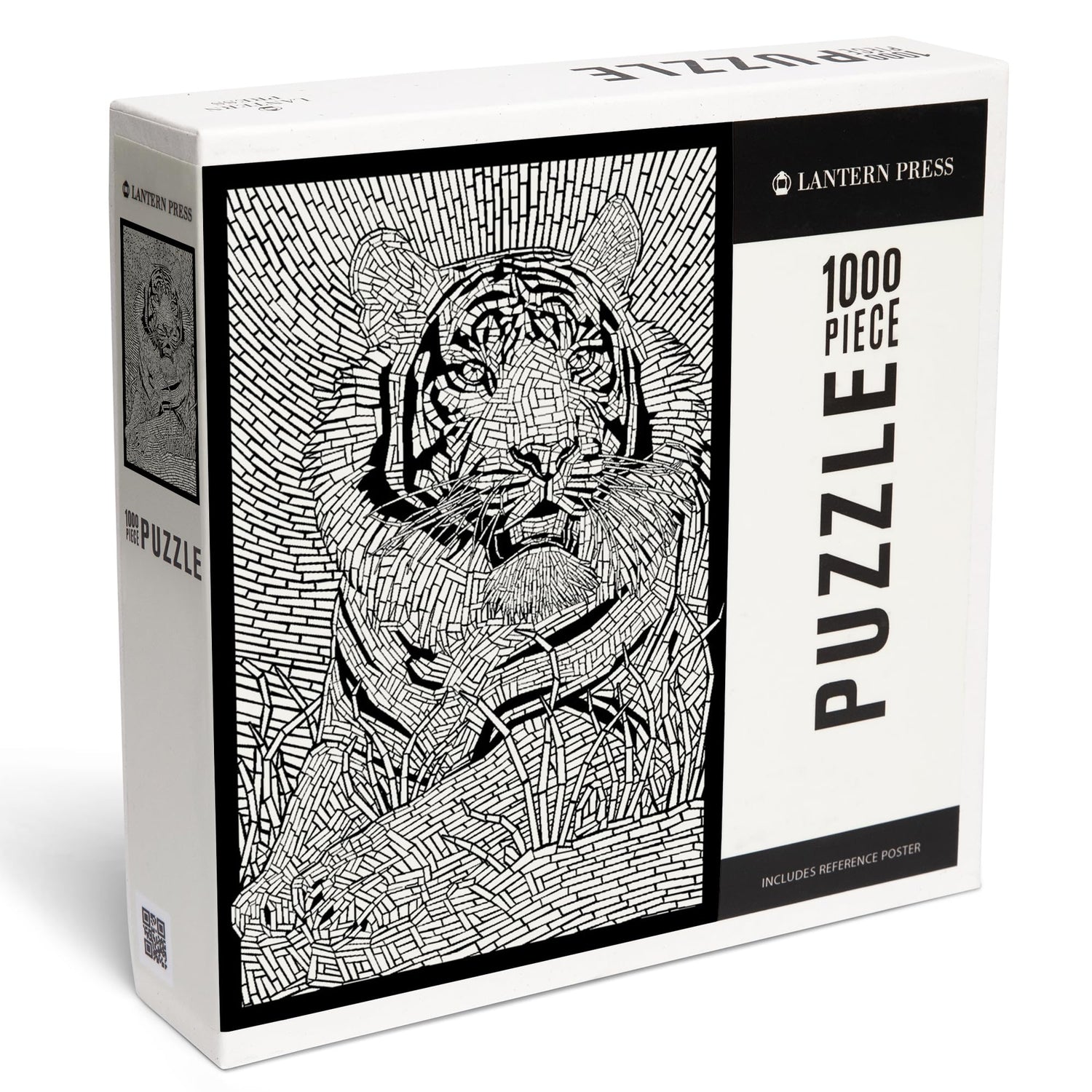 Lantern Press Tiger, Coloring Book 1000 Piece Jigsaw Puzzle for Adults, Made in USA with Reference Poster