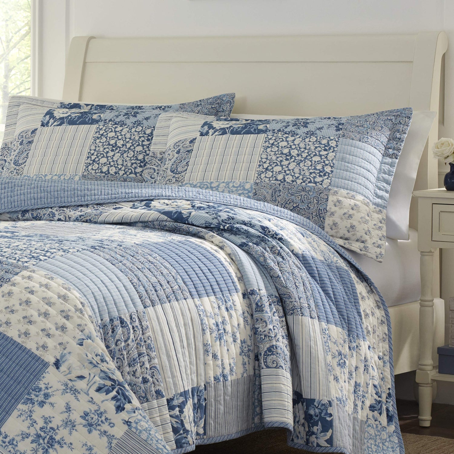 Laura Ashley - King Quilt Set, Reversible Cotton Bedding with Matching Shams, Farmhouse Inspired Home Decor (Paisley Printed Patchwork Blue, King)