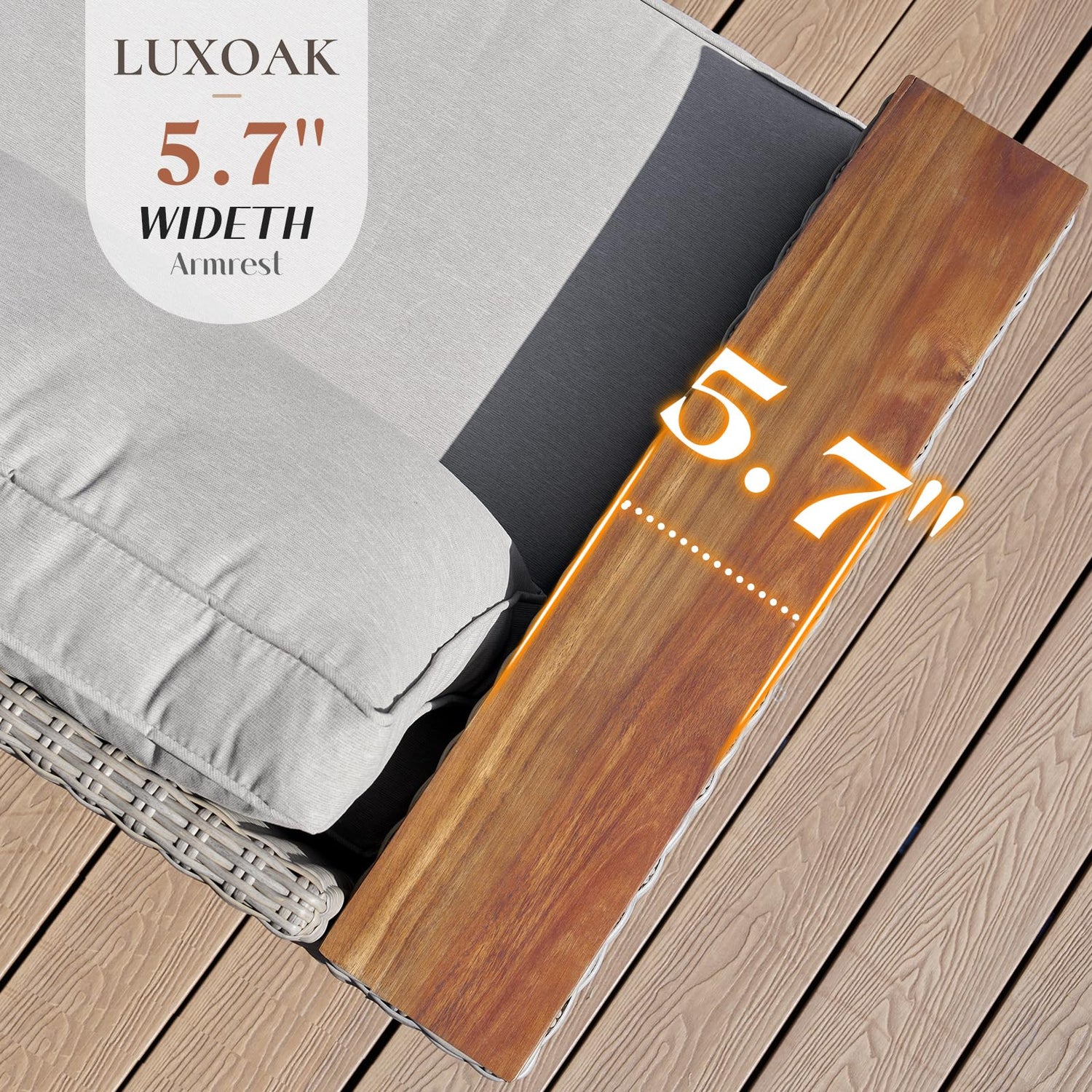 LUXOAK Patio Furniture Set, 6 Piece Wicker Patio Conversation Set with Wide Solid Wood Armrest, All Weather Outdoor Sectional Furniture with Wood Legs for Backyards, Porch, Poolside, Garden, Balcony