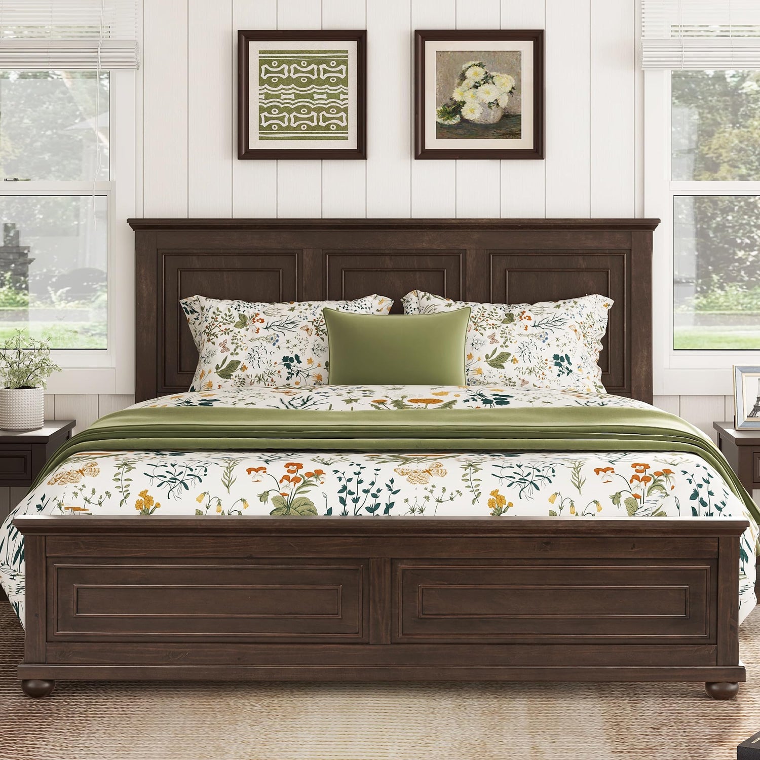Mirightone Wood King Bed Frame with Tall Headboard and Footboard, Rustic King Panel Bed with Under Bed Storage, Farmhouse Style, Noise-Free, No Box Spring Needed, Antique Brown