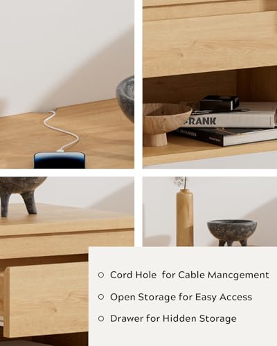 - Thoughtful Design: This wall-mounted end table's cord hole simplify cable management, while the enclosed drawer and open compartment provide the suitable storage space for your bedside items. With its solid wall-mounted design, the sturdy construction brings you greater weight support