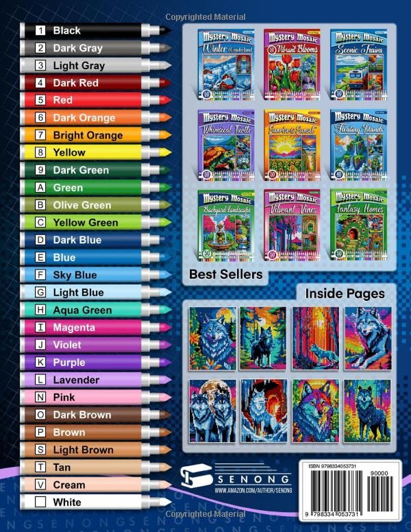 Feature Highlights: 40 pixel art scenes capturing the beauty of mystical wolves Easy-to-follow color guides for each design Consistent color palette for a harmonious coloring experience Suitable for all ages and skill levels