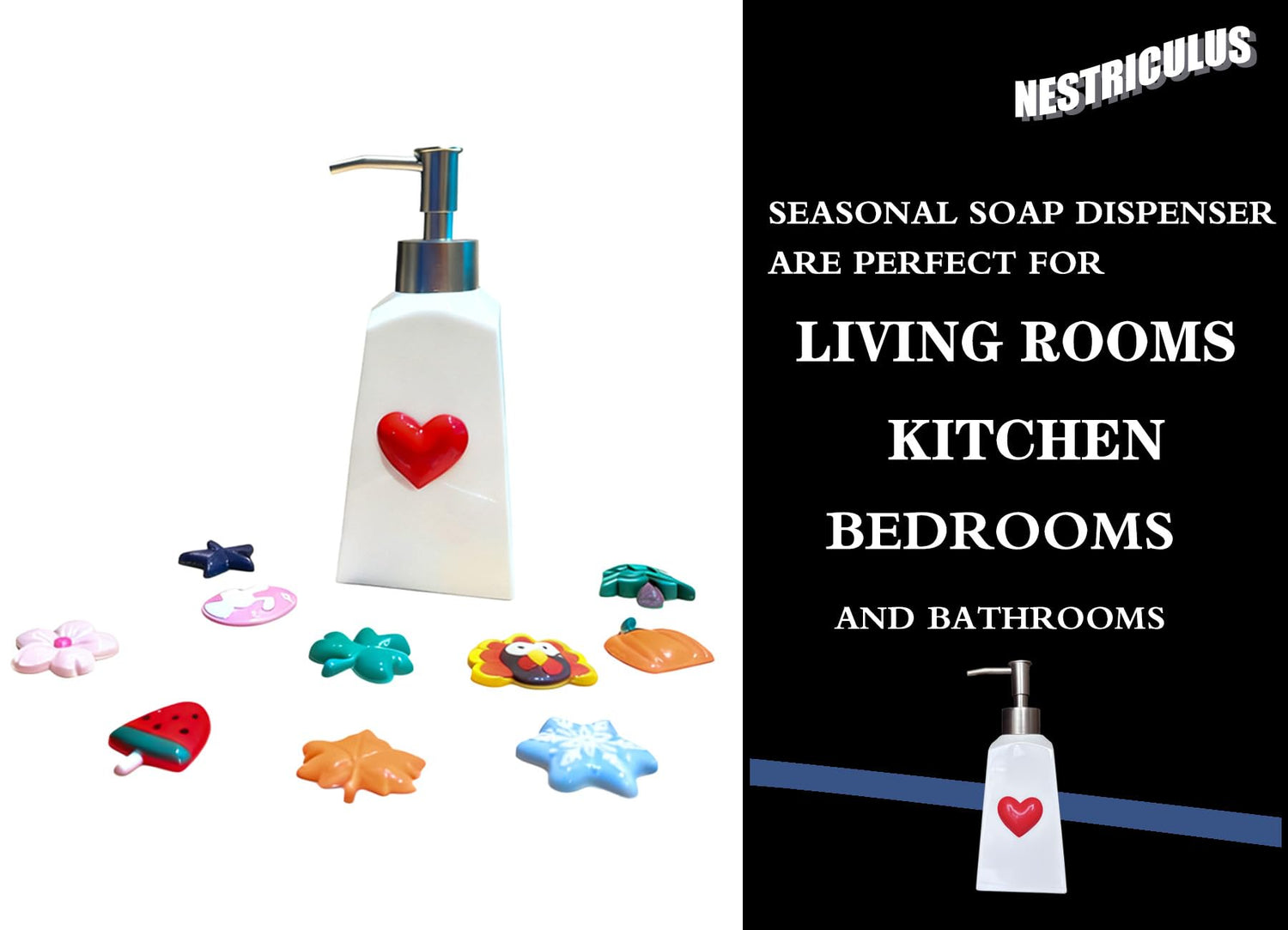 Say goodbye to the bottom board!Experience simpler and more direct holiday decoration fun!This resin soap dispenser features an innovative built-in magnet design,making it incredibly easy to replace decorations.