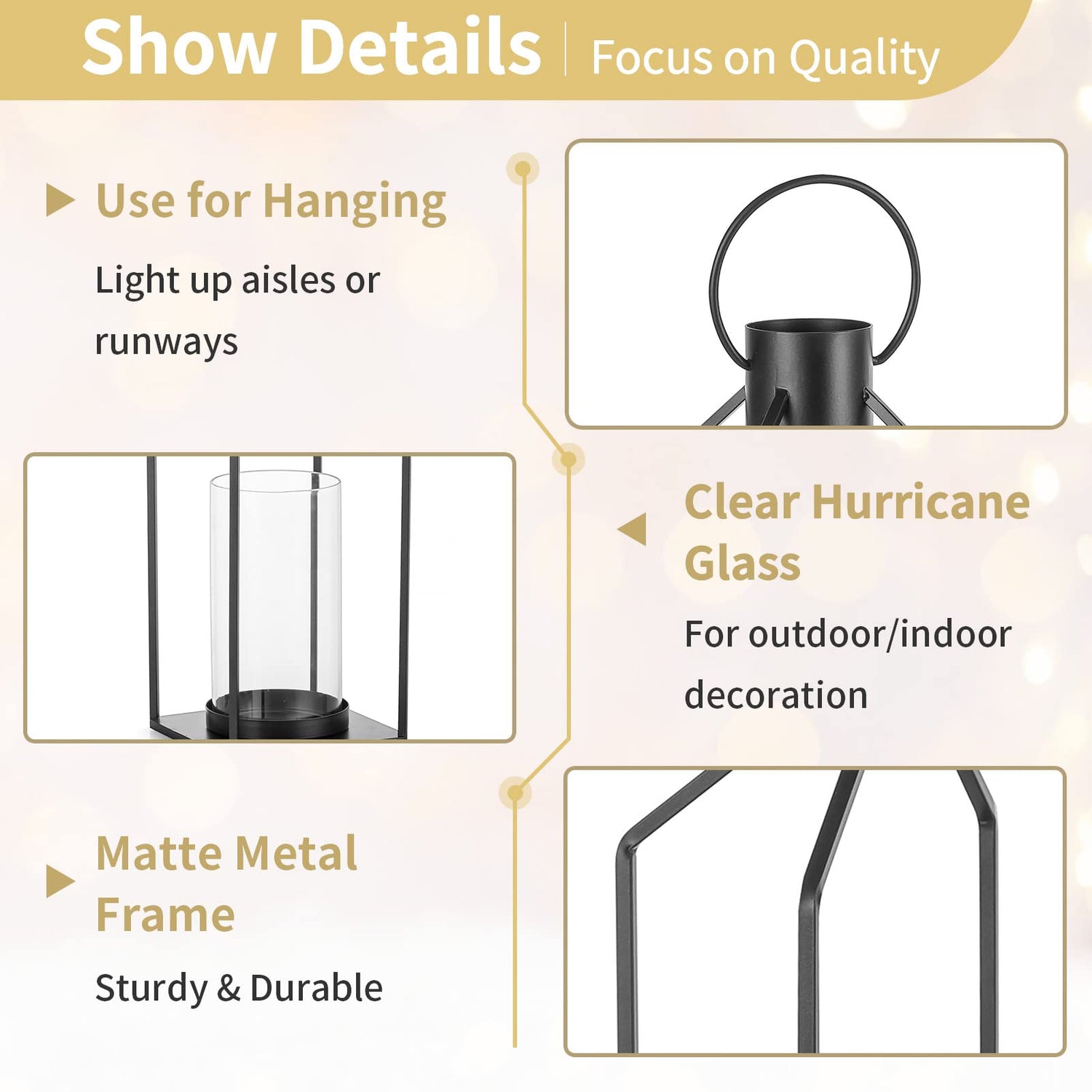 - 【Outdoor Decorative lantern】Our black decorative lantern is handmade with high-quality metal frames. Each elegant decorative candle holder comes with a windproof bottomless hurricane glass candleholder to prevent the candle from being blown out. The minimalist modern design can perfectly match various decorations, adding a warm atmosphere to your indoor and outdoor activities.