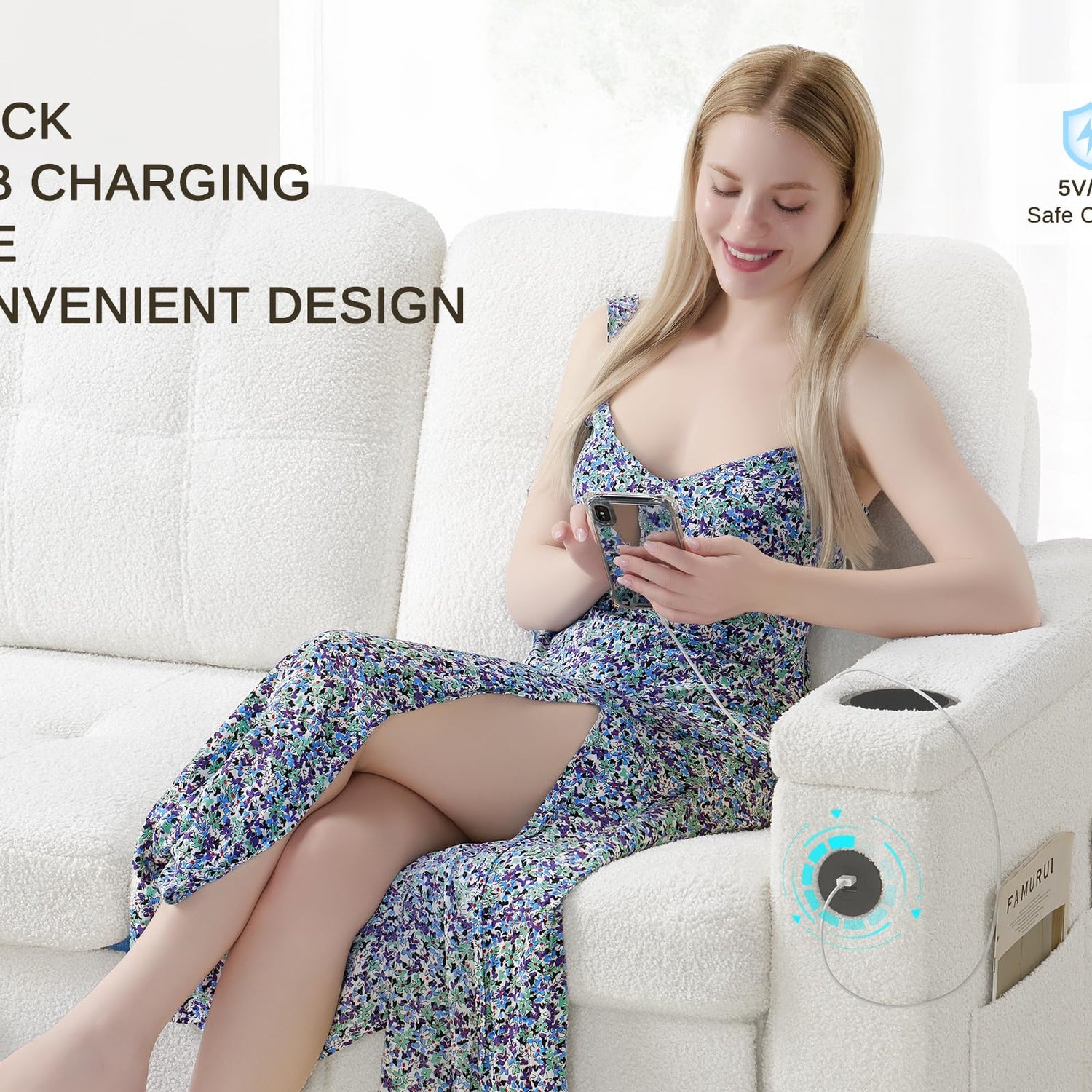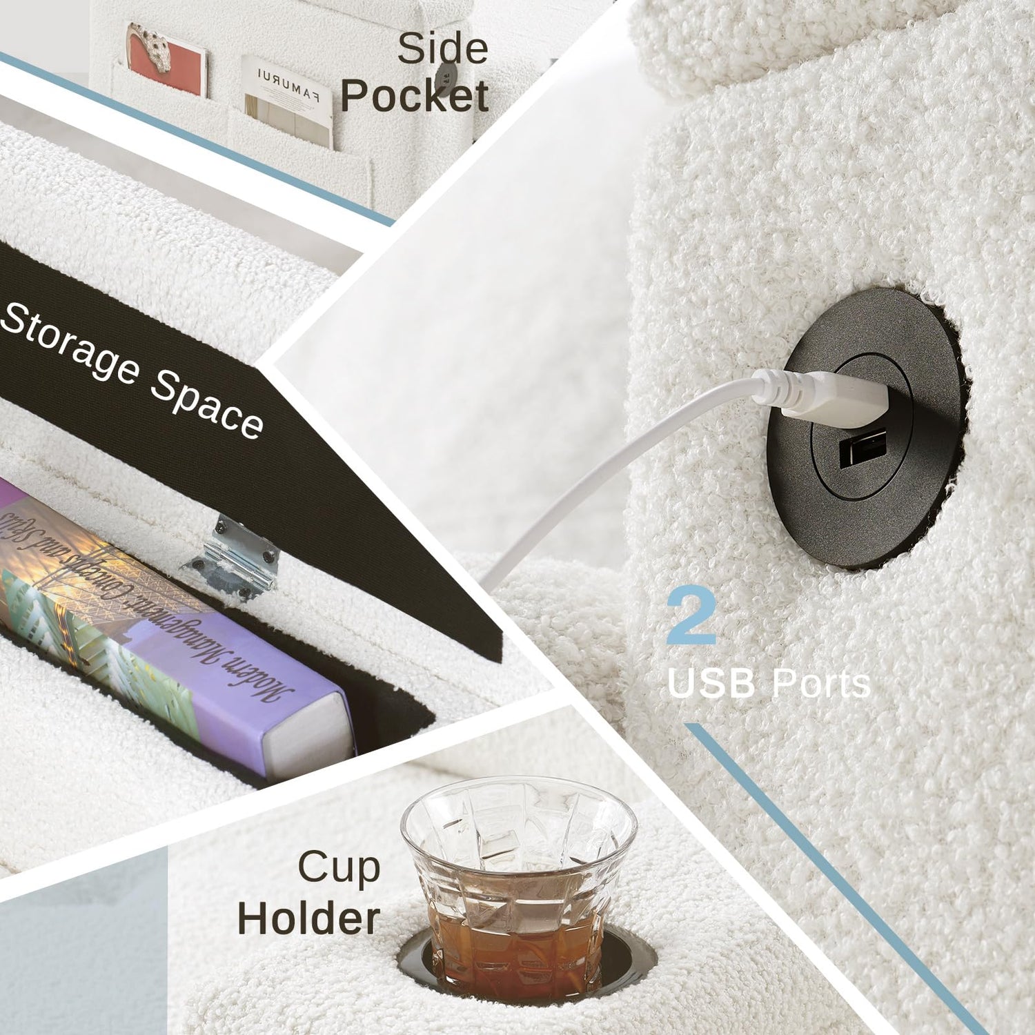 - 3 in 1 Functional Armrest: Convertible sofa includes 2 integrated USB ports, ideal for charging your devices. Open up to find concealed storage compartments, extra side pockets, and cup holders for your drinks.
