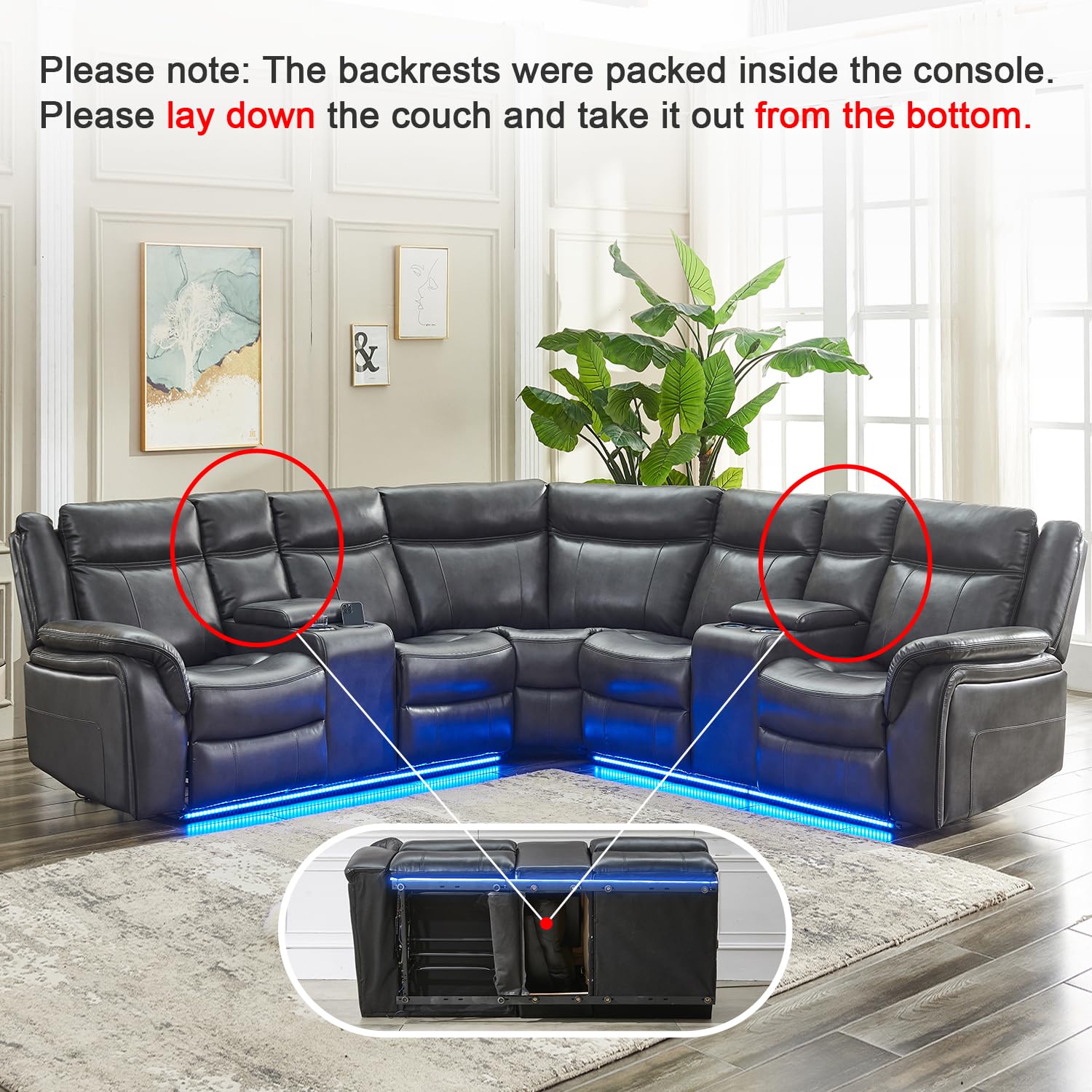 - Tips: The console backrest was packaged inside the console, you need to lay down the couch and take it out from the bottom. If there is any shipping damage on arrival or defects during use, we are committed to delivering exceptional customer service. Our company values customer satisfaction and we are proud to give you a good experience.