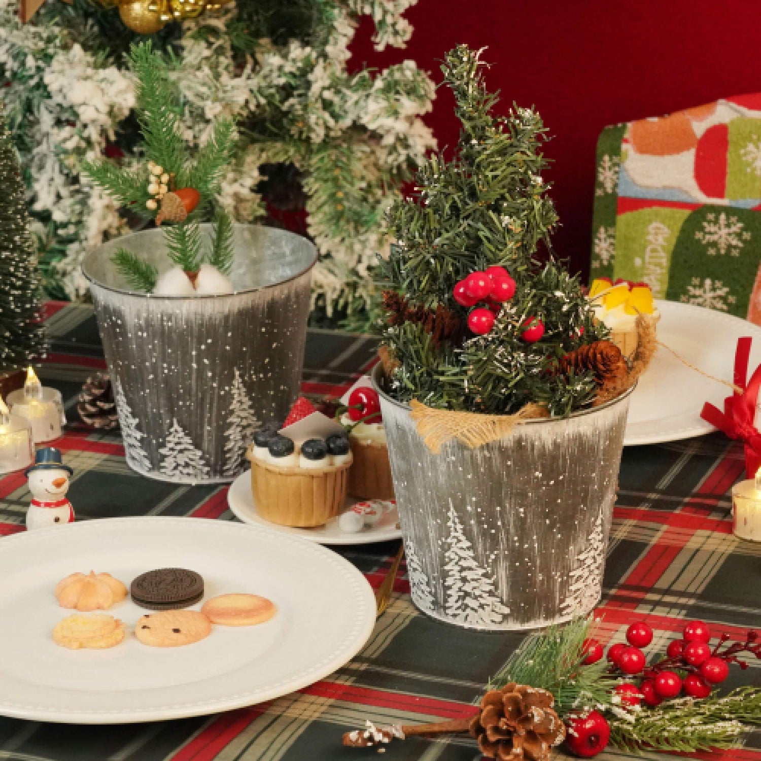 - Ideal Christmas Decor: Putuo Decor 4pcs Christmas planters pots are printed clear Christmas tree pattern. Our Christmas metal tin buckets are featured by beautiful and durable, not easy to fade. Great holiday decorations for your home!