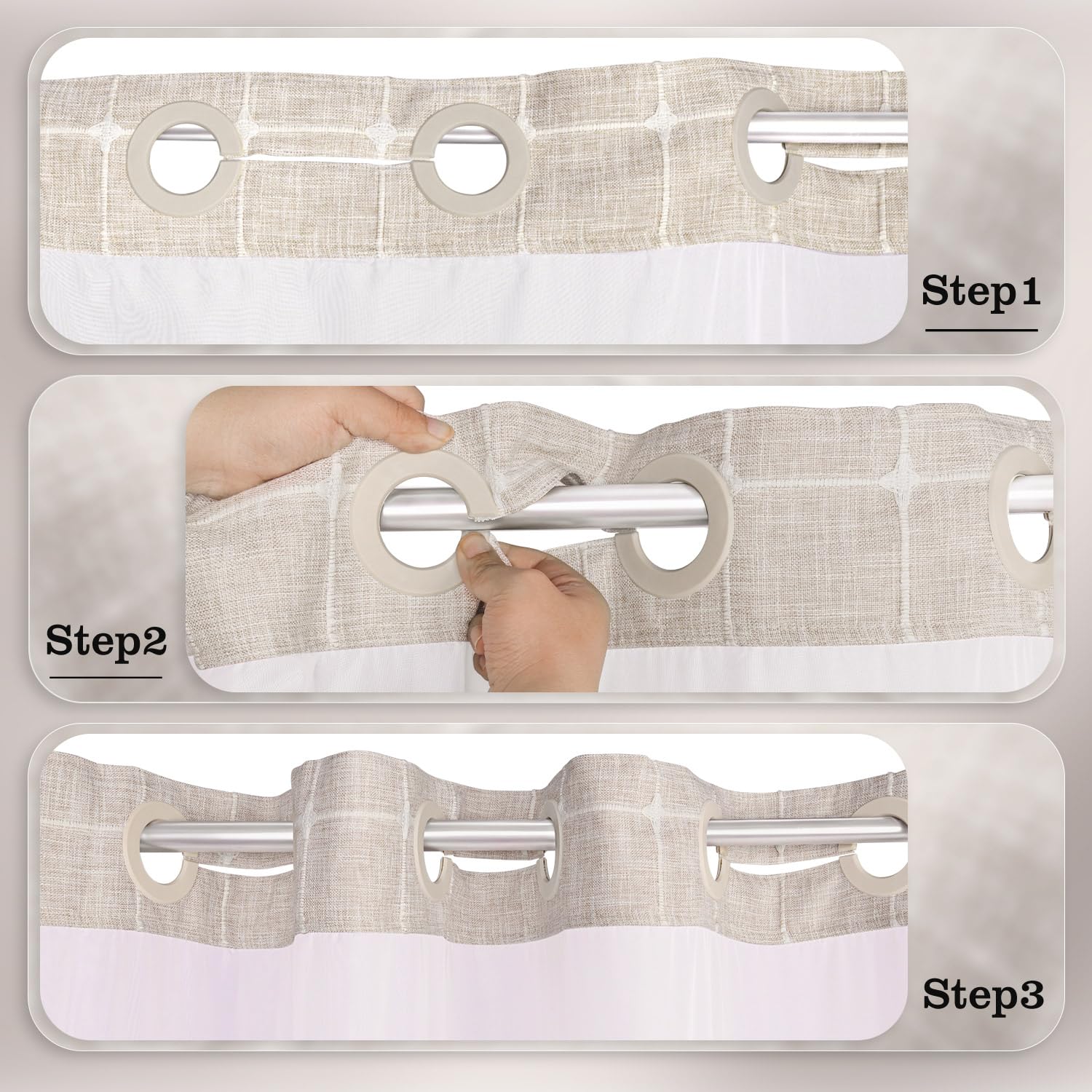 River Dream Farmhouse Linen Textured Shower Curtain with Snap-in Liner Set, No Hooks Needed, with Tassels for Rustic Bathroom Decor,with Window,with Magnets,Linen,71Wx74H
