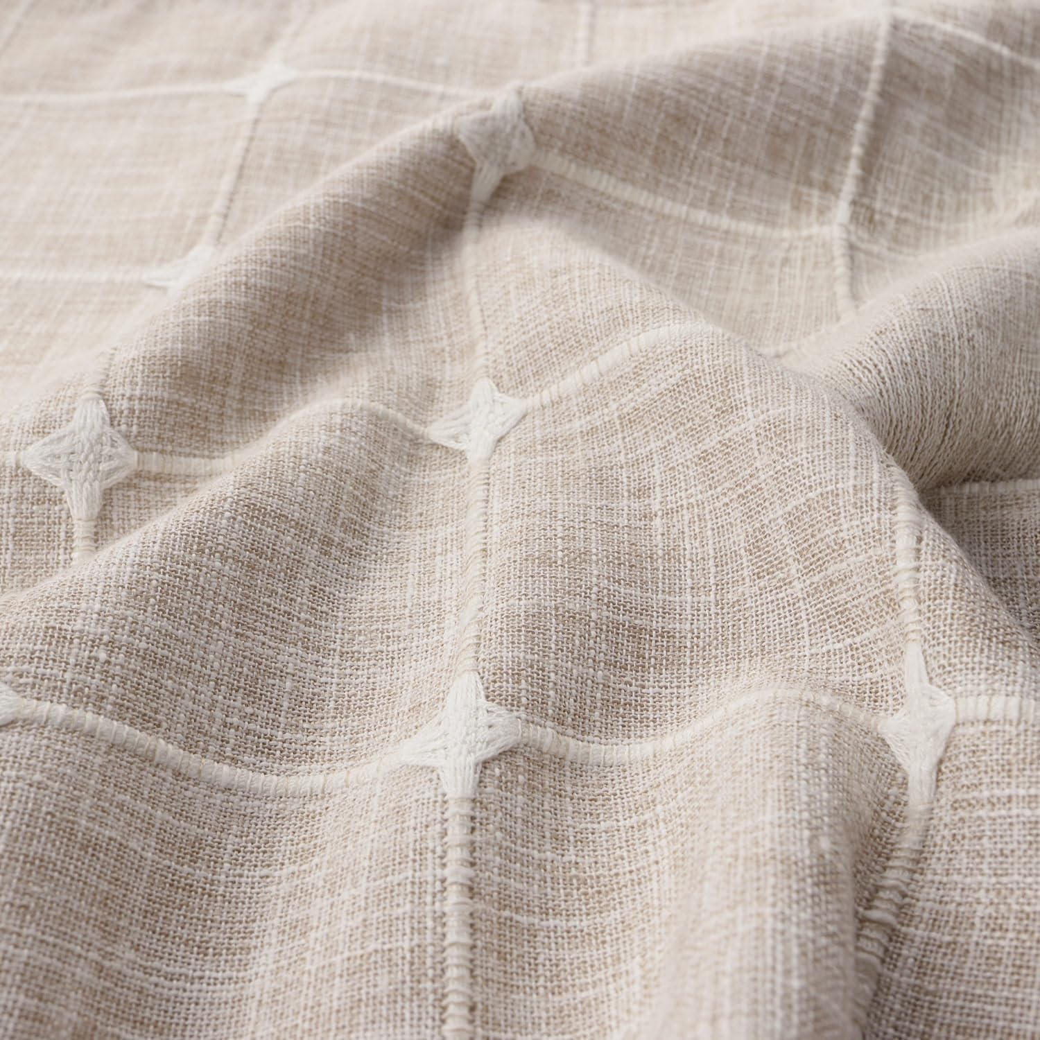 - [ Farmhouse Style]: The linen texture shower curtain with tassels features a stripe design and charming tassels on sides. The end result is a ringless shower curtain that exudes elegance and country charm, elevating the bathroom decor to new heights.