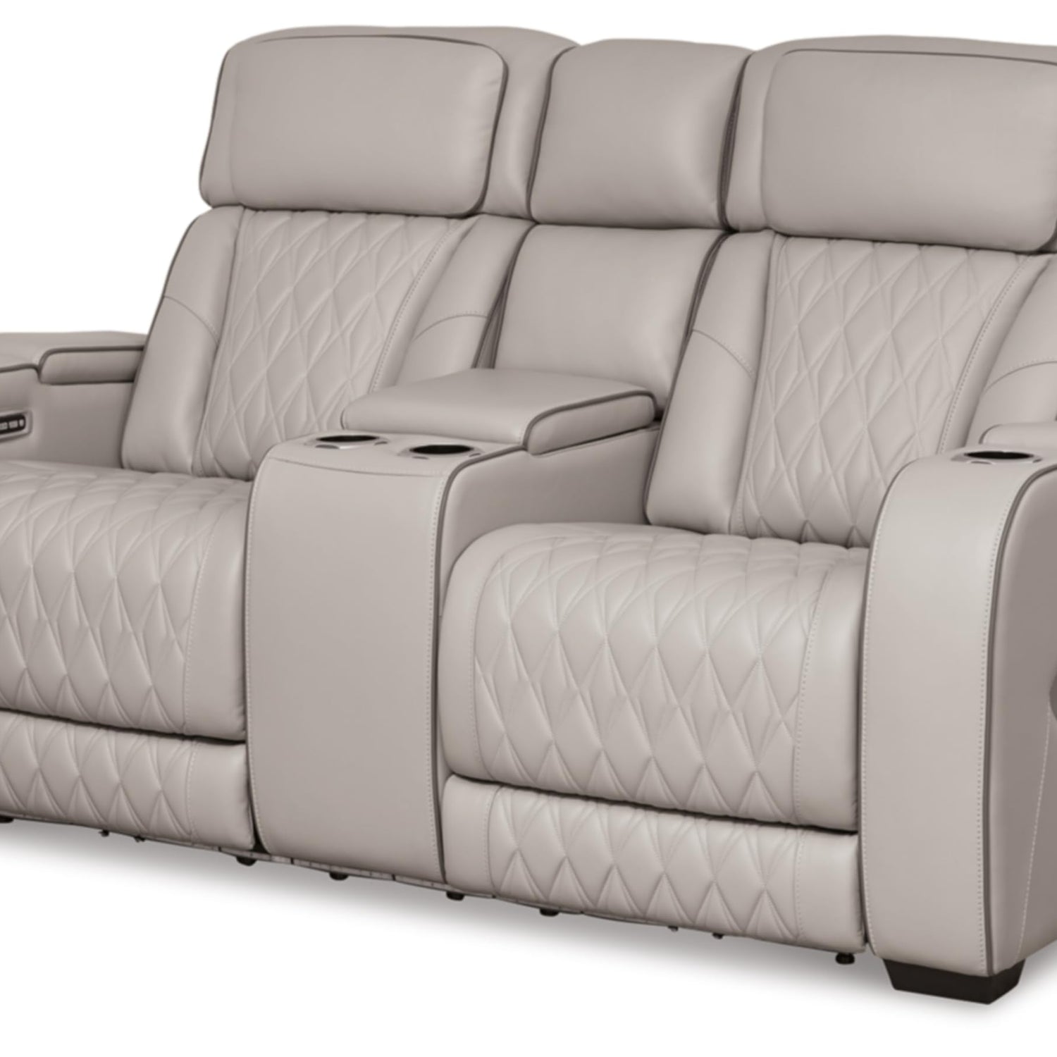 Details: Ready to take your reclining experience to the next level? Then sit up and take notice. With this power reclining loveseat, ultimate relaxation is at your fingertips. Experience the pure bliss of an air massage system and heated seats at the touch of a button. Plus the luxurious diamond-stitched upholstery is easy on the eyes, adding elegance to any space. Signature Design by Ashley is a registered trademark of Ashley Furniture Industries, Inc.