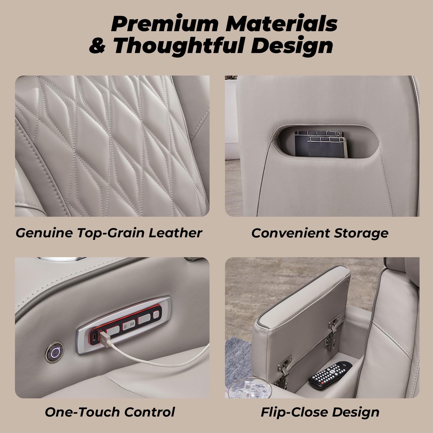 - MODERN FEATURES: Lounge in comfort with the air massage system, heated seats and adjustable headrests. This sofa Includes a center console with 2 cup holders and hidden storage
