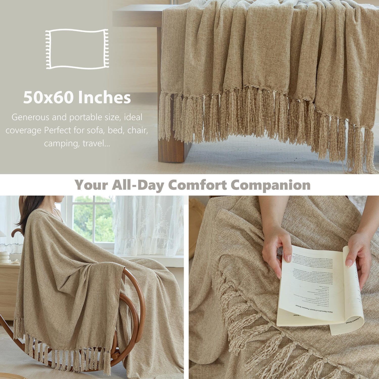 - Perfect Gift Option: With its combination of style, comfort, and practicality, this khaki chenille fringe throw makes an ideal gift for friends, family, or anyone who appreciates home decor. Comes in a Beautiful Gift Box, Great for Birthdays, Christmas, Housewarming & Anniversaries, etc.