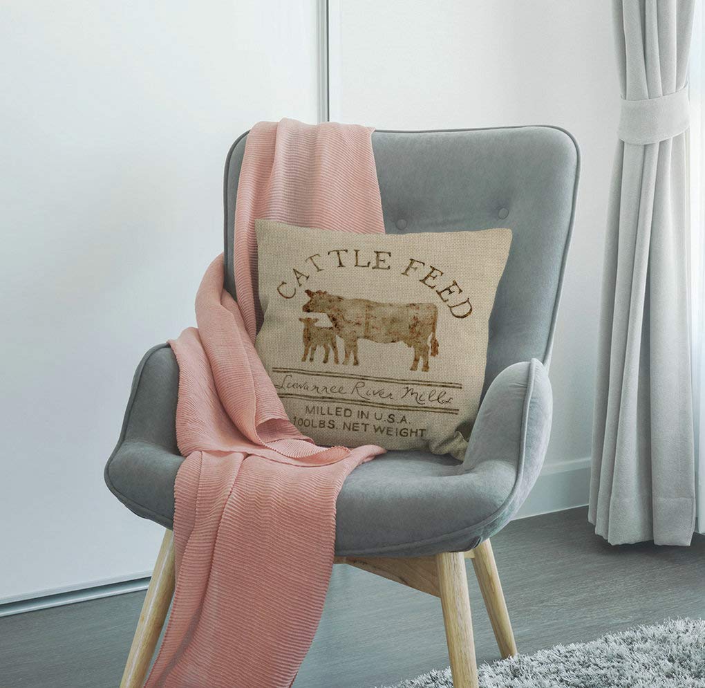 SSOIU Cattle Feed Theme Farmhouse Decorative Throw Pillow Covers for Sofa Couch Home Decoration 18x18 inches