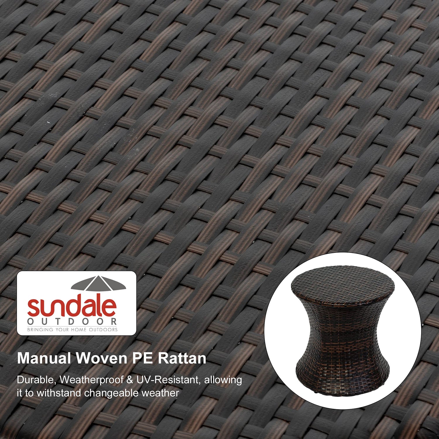 Sundale Outdoor Small Side Table Patio Rattan End Table 20 Inch Hourglass Wicker Accent Tables Steel Frame Lightweight Brown Mesa Auxiliar pequeña Mesa Auxiliar de ratán marrón