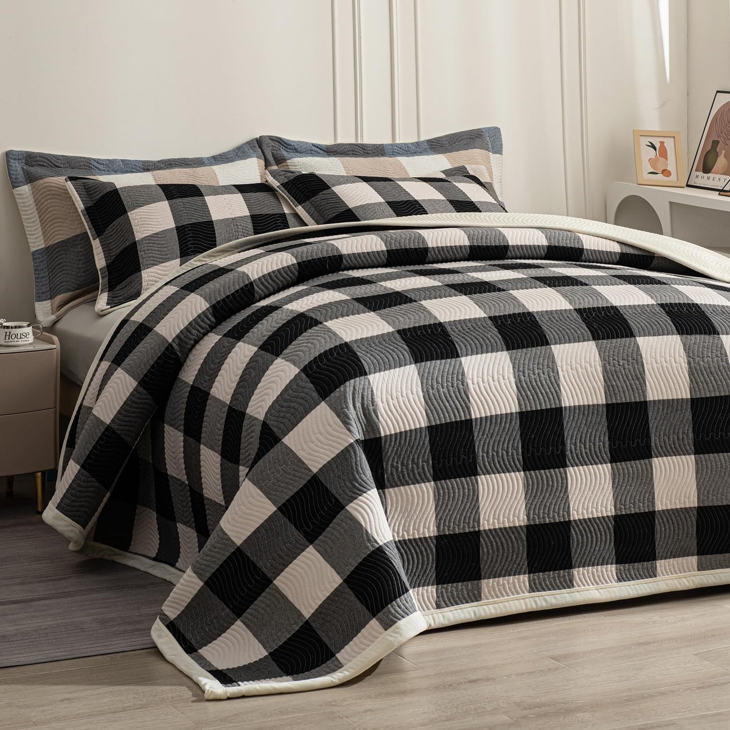 - CLASSIC CHECKERED DESIGN:Designed with a classic yet stylish checkered pattern, this quilt complements both modern and farmhouse-style decor, adding a stylish touch to any bedroom.