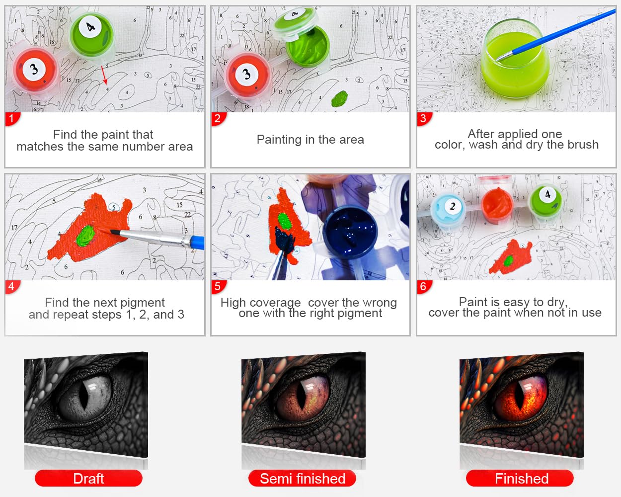 TUMOVO Dragon Eyes Paint by Numbers for Adults - Fire Dragon DIY Kit, Fantasy Animal, Abstract Red Eye - 16"x20" (Frameless)