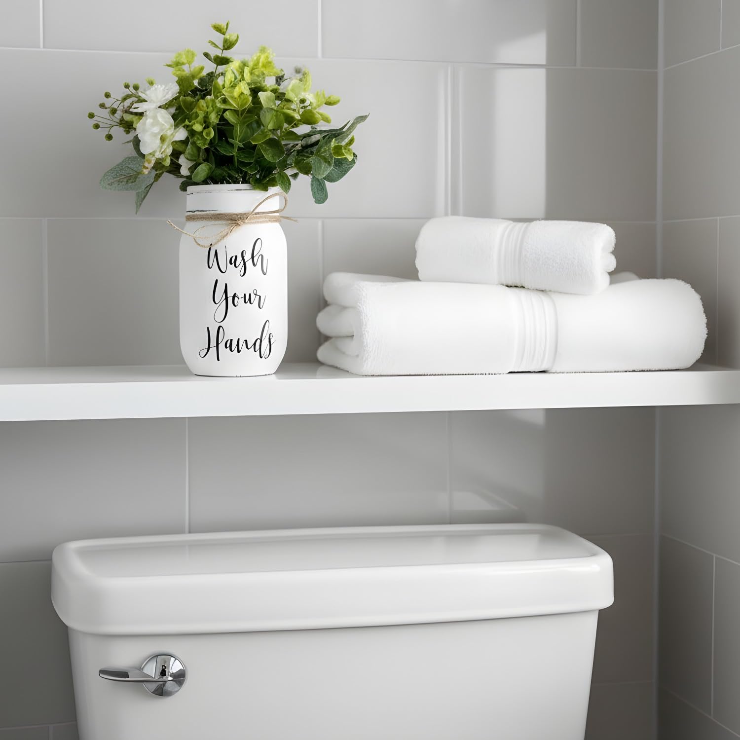 - Compact Size – 7” Tall Overall – This bathroom decor jar is approximately 7" tall including flowers, making it the perfect small centerpiece or shelf decoration without taking up too much space.