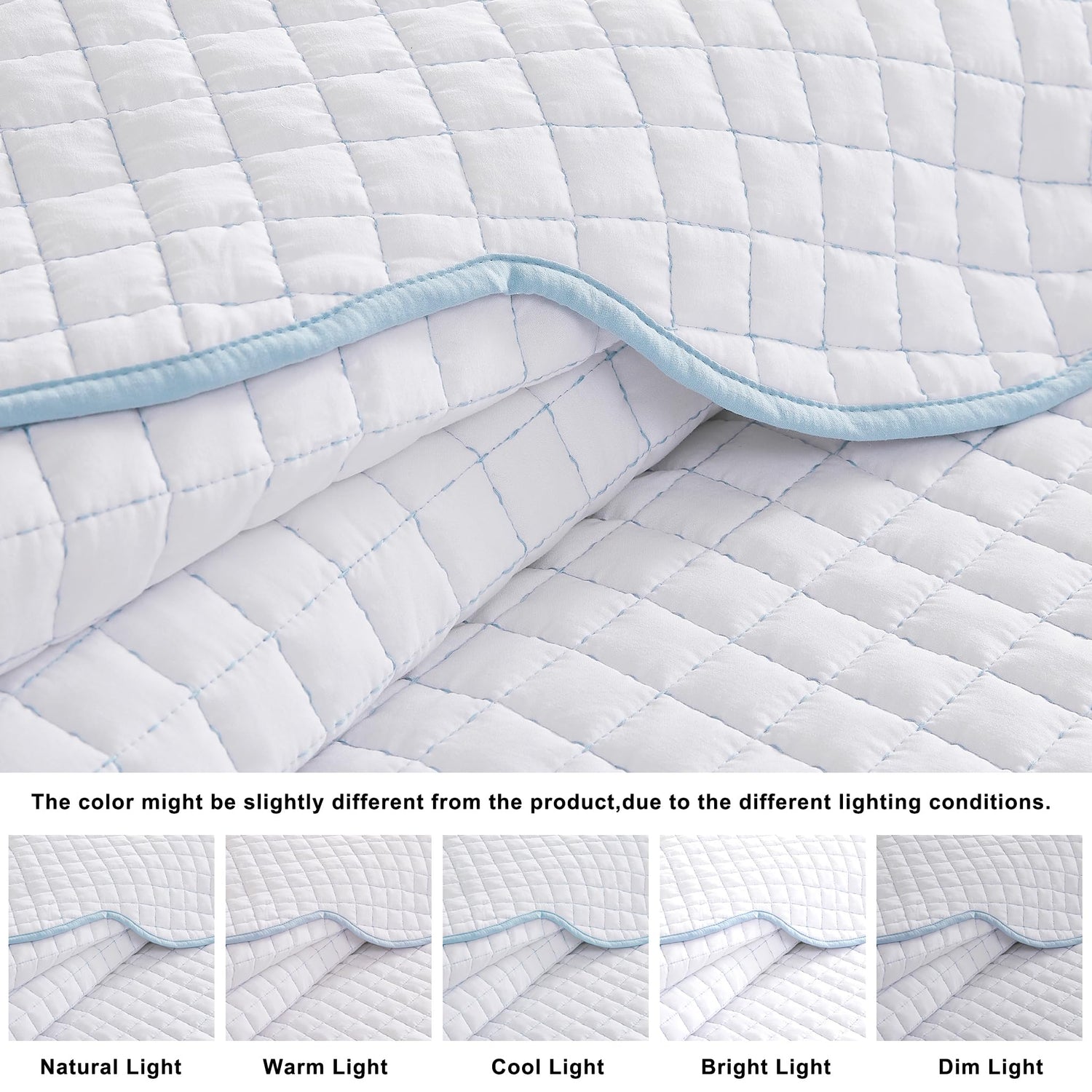WDCOZY White King Size Quilt Bedding Set, Scalloped Farmhouse Country Rustic Lightweight Soft Coverlet, Cute Cozy Kantha Pick Stitch Bedspread, 2 Pillow Shams, Blue Edge Blue Stitching