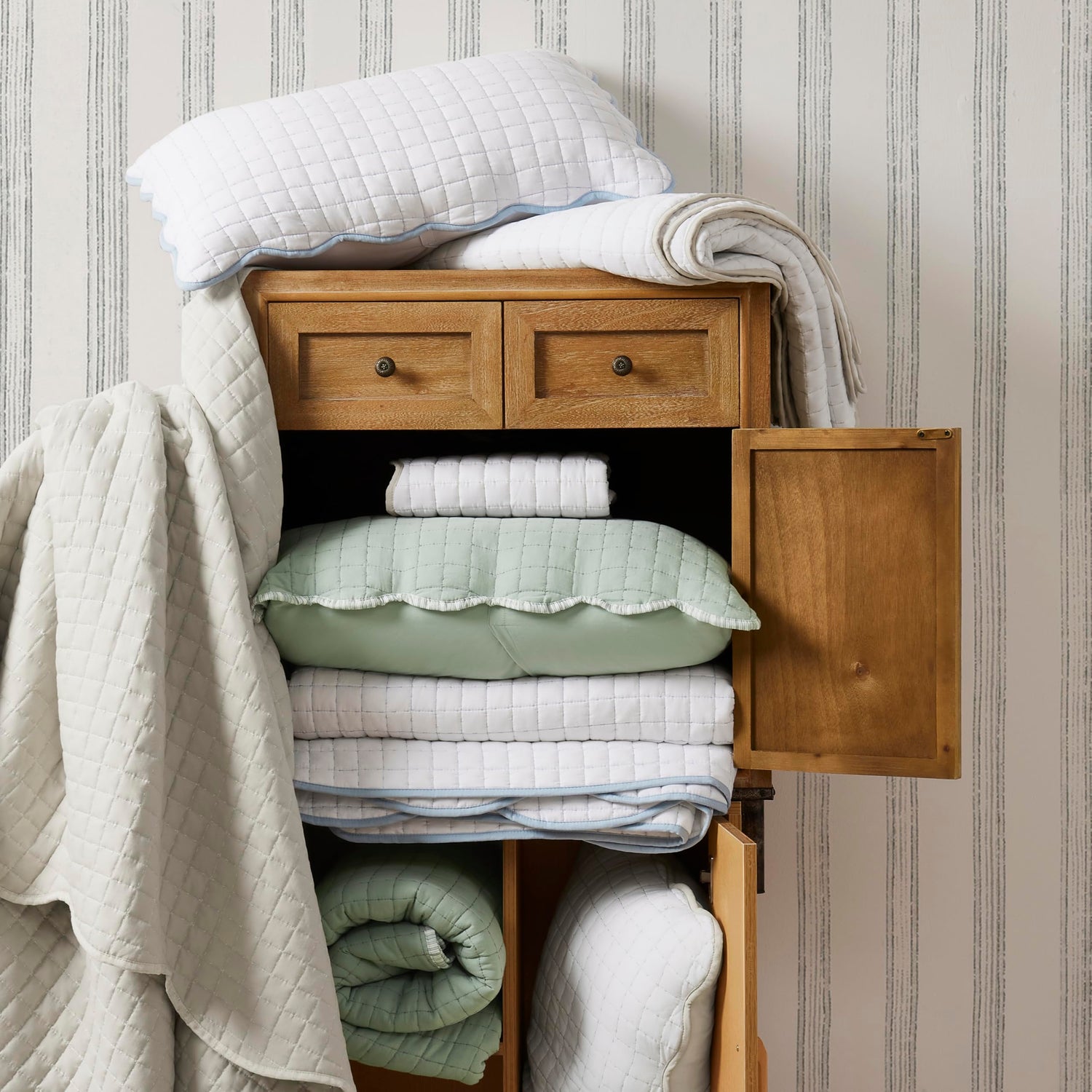 - Elegant Design: This bedding set brings farmhouse charm to your bedroom. The king size includes 1 quilt (104x90") and 2 pillow shams (20x36"). The coverlet’s scalloped edge with contrasting trim adds a sophisticated touch, making it a standout piece in any décor. Perfect for those seeking a stylish yet cozy addition to their bedding collection.