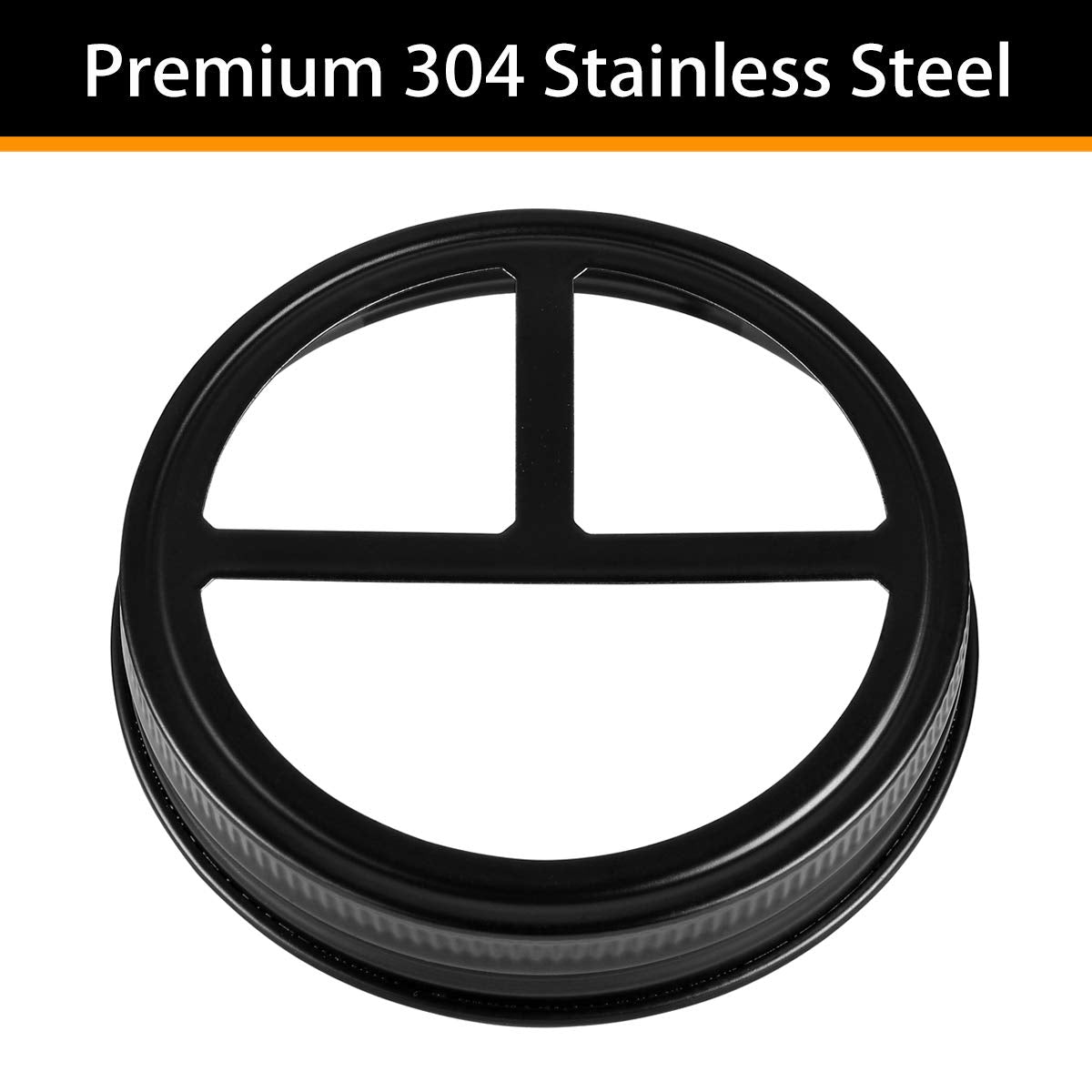 [Wide Mouth ONLY] SheeChung 2 Pack Mason Jar Toothbrush Holder Lid - Rustproof 304 Stainless Steel for Ball Mason Jar or Any Pint. Jar, Farmhouse Decor Bathroom Accessories Set - Black