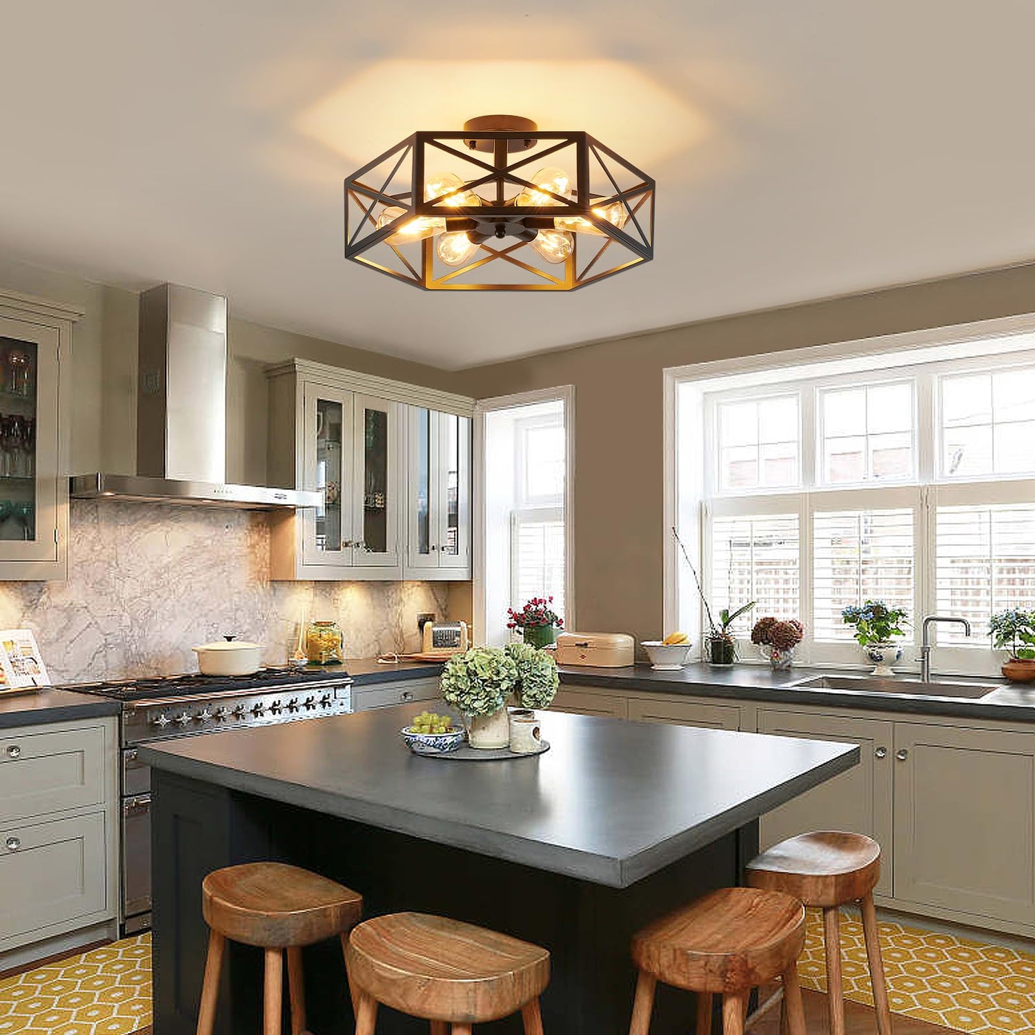 - 【Wide Application】Vintage hexagon ceiling lights is beautiful and bright with a beautiful rustic, yet modern farmhouse appeal. It will be a ideal home lighting as well as tasteful home ornament. Ideal as a kitchen light fixtures, hallway lighting fixtures ceiling, bedroom ceiling lights, ceiling lights for living room.
