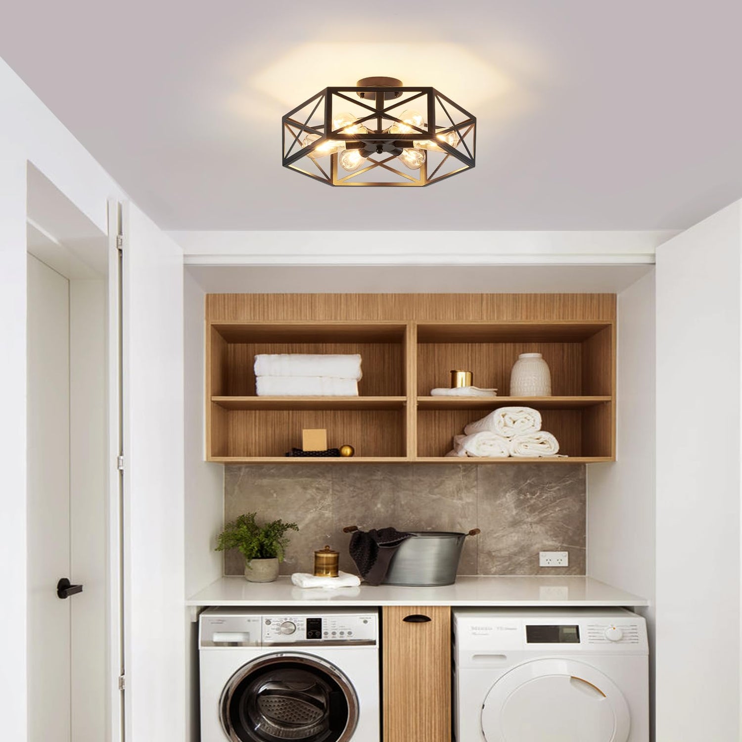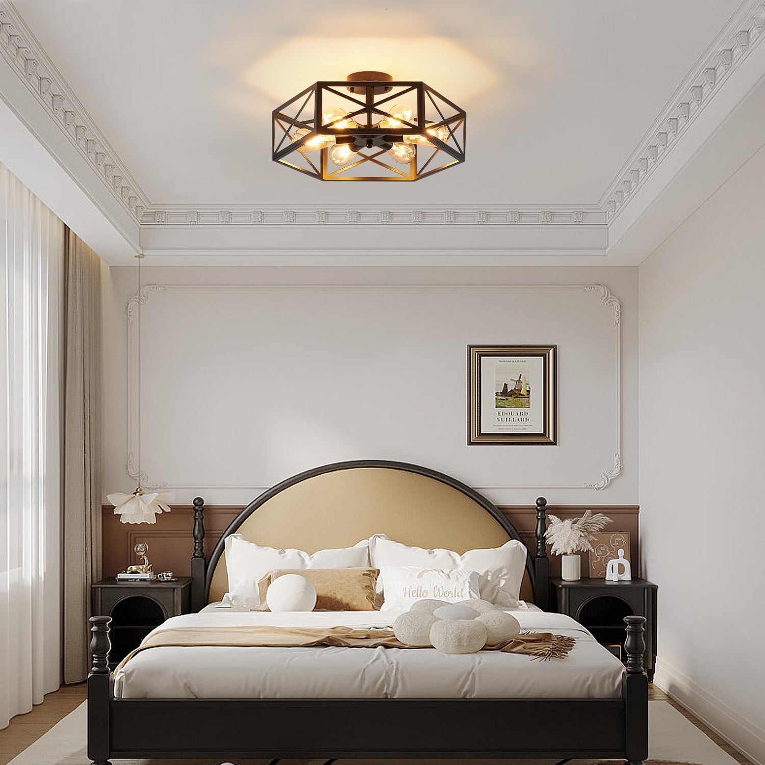 - 【 Gorgeous Ceiling Light】The modern ceiling lighting fixture features a hexagonal metal cage in a matte black finish, offering a farmhouse industrial look. When the black ceiling fixture is turned on it will gives off beautiful pattern on ceiling and add more charm to your room. The open design and no glass allows the exposed bulbs to shine brightly, making it easier for you to change the bulbs.
