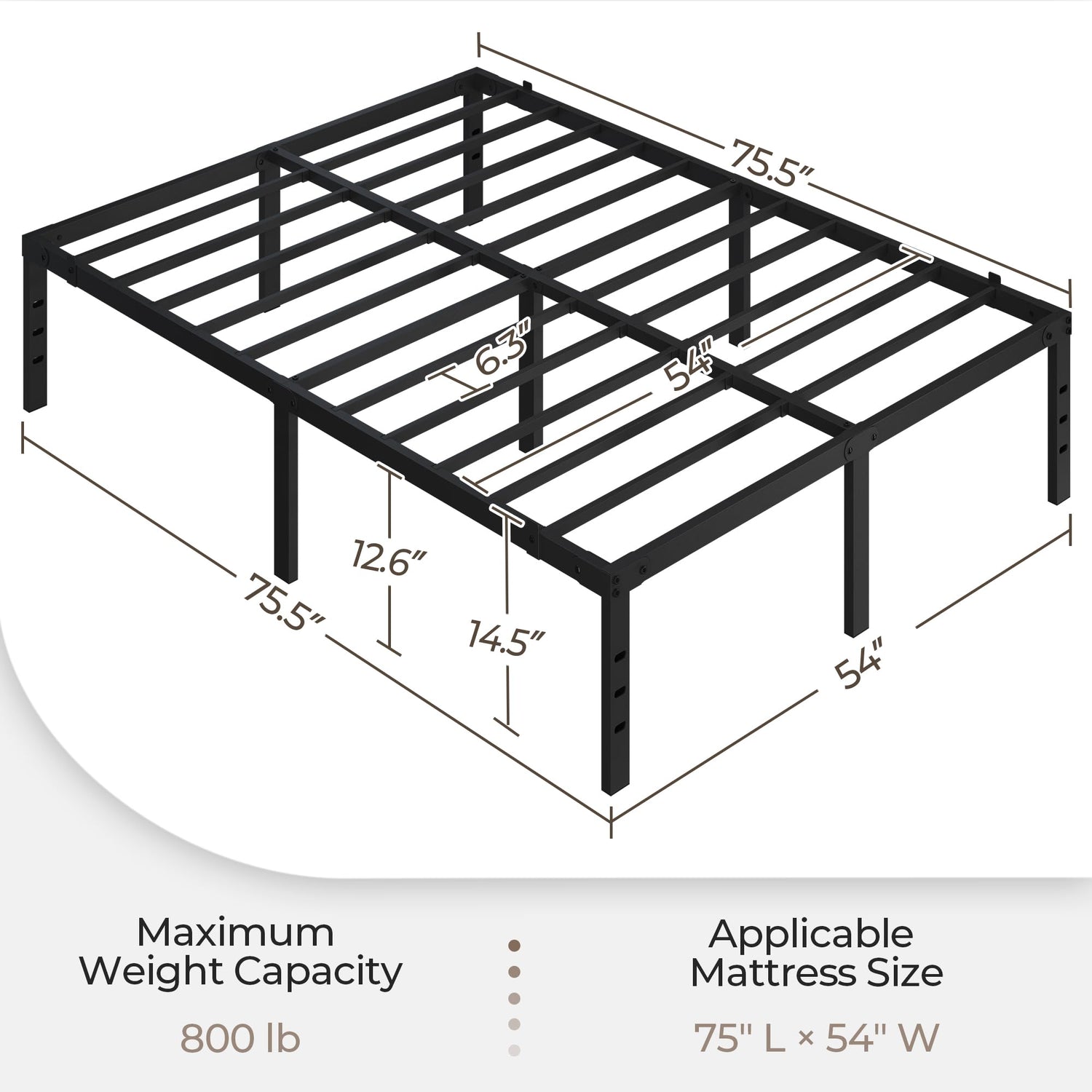 - Durable Frame: This full size bed frame is constructed entirely from sturdy steel frame. It includes solid slats and 9 robust metal legs, with a maximum weight capacity of 800 lb. This ensures ample firmness and stability for your daily restful sleep