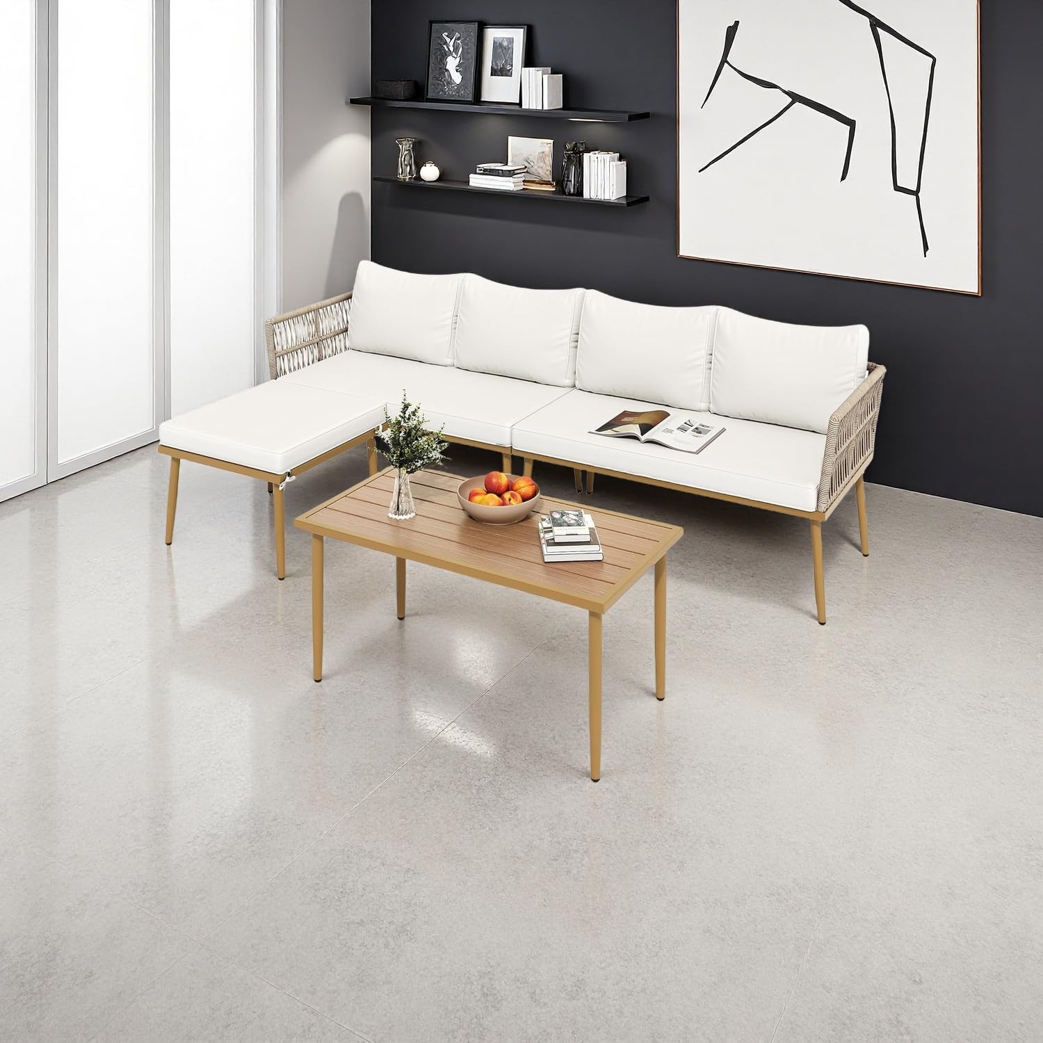 - Strong Enough for Everyone: With a weight capacity of 794lbs, this set comfortably fits 4-5 people. The anti-slip feet keep it stable on any surface, and the hook-and-loop fastener keeps the two sofas secure. Plus, the table's metal edges make it extra durable