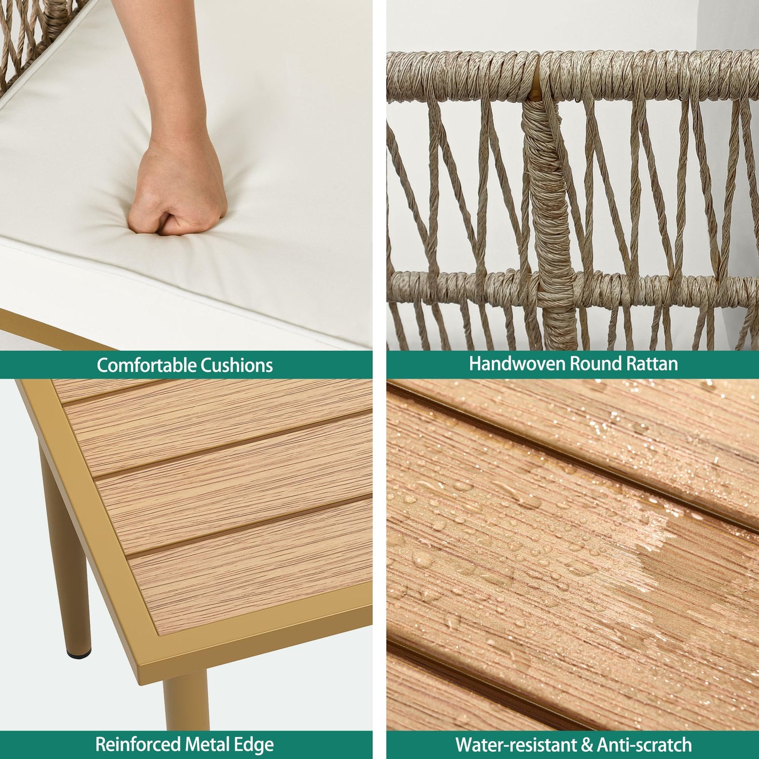 - Ready for All Seasons: Whether it’s sunny or rainy, this wicker patio furniture set stands tough with its all-weather rattan and durable metal frame. The cushion covers are easy to zip off for a quick wash, so spills or a little drizzle won’t ruin your outdoor time