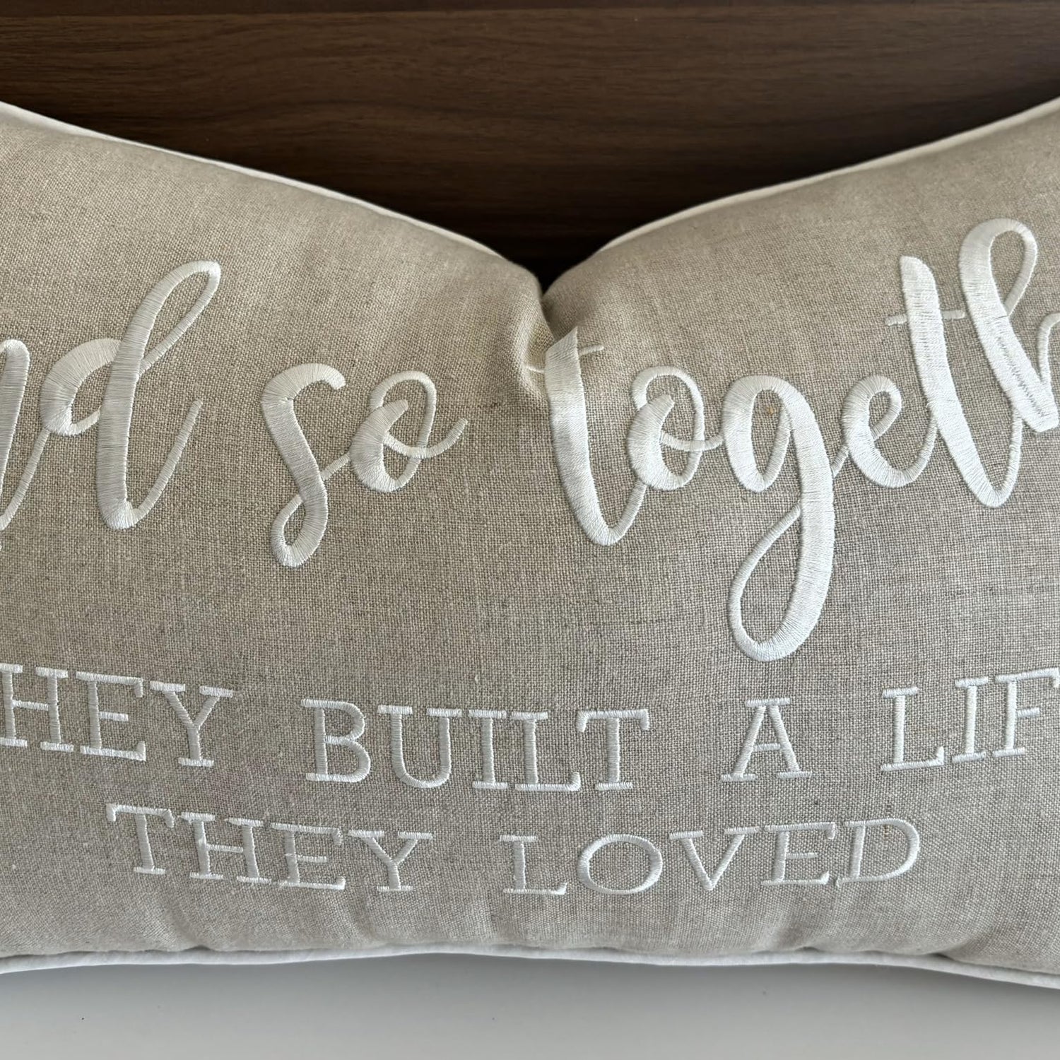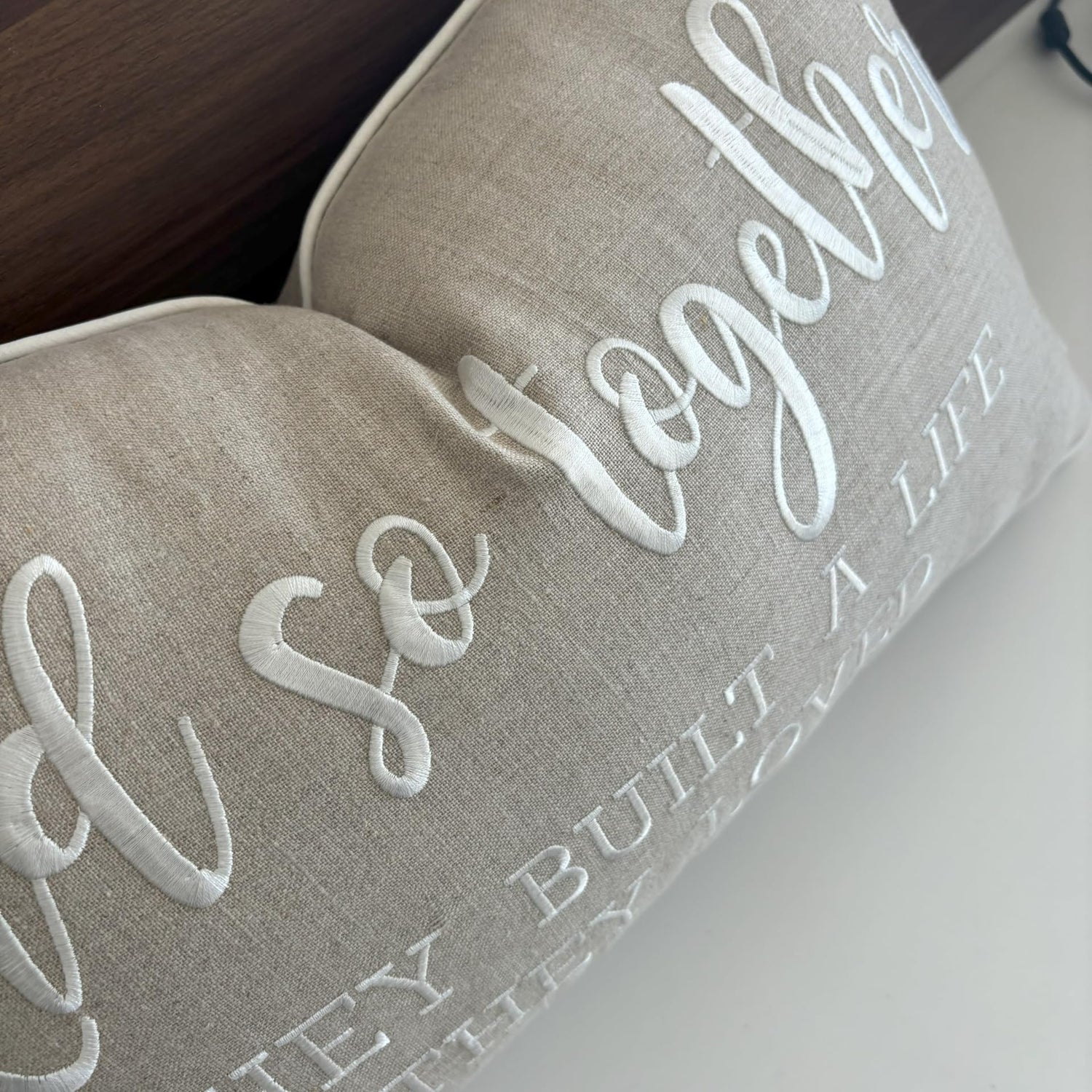 • SENTIMENTAL EMBROIDERY: Features a heartfelt design with a offwhite embroidery quote that celebrates love and togetherness, making it a perfect gift for husband, wife. Cushion for bedroom, couch, sofa or new home.