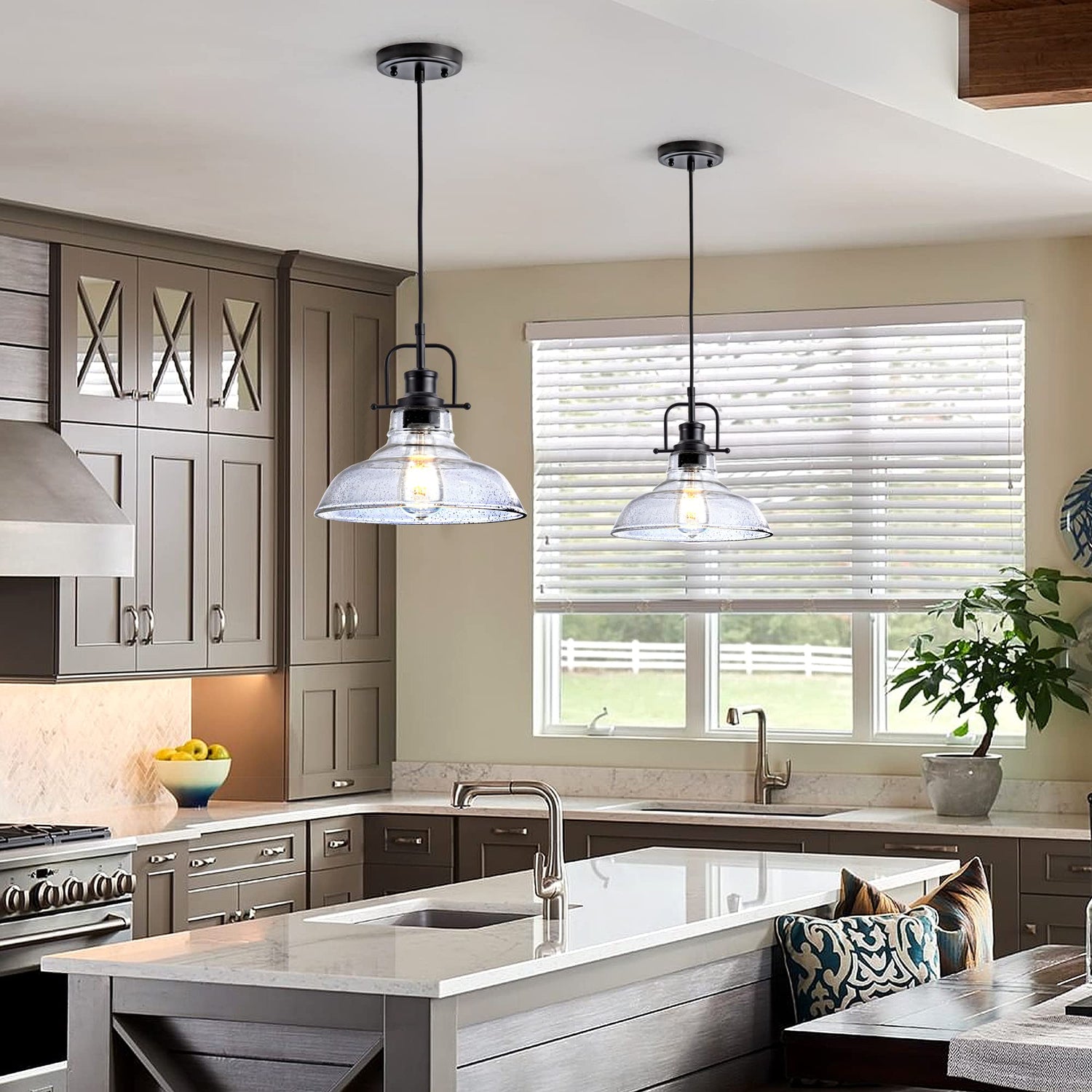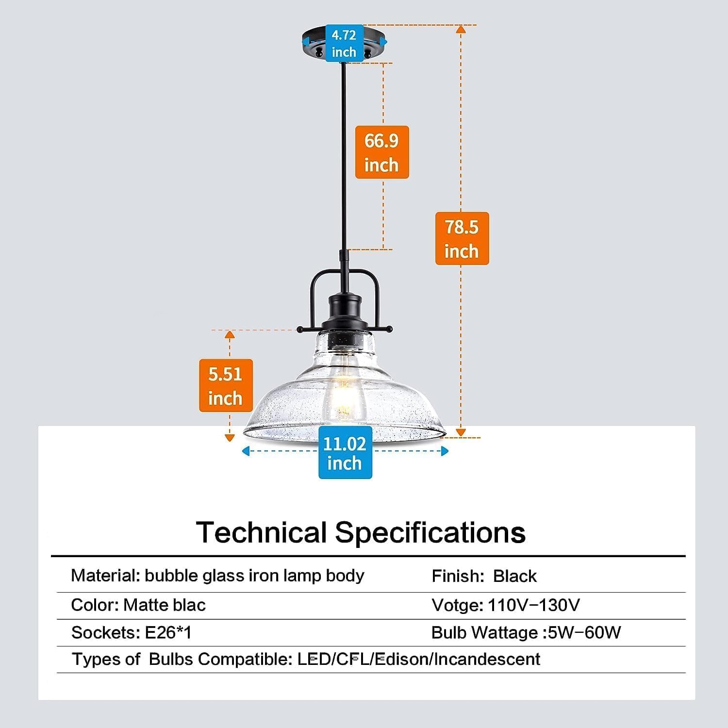 - 【 Industrial Mini Design 】 Please confirm the size before ordering. clear bubble glass shade with matte black finish. Simple line design will make your house look stylish. Great for any kitchen island, foyer or hallway.