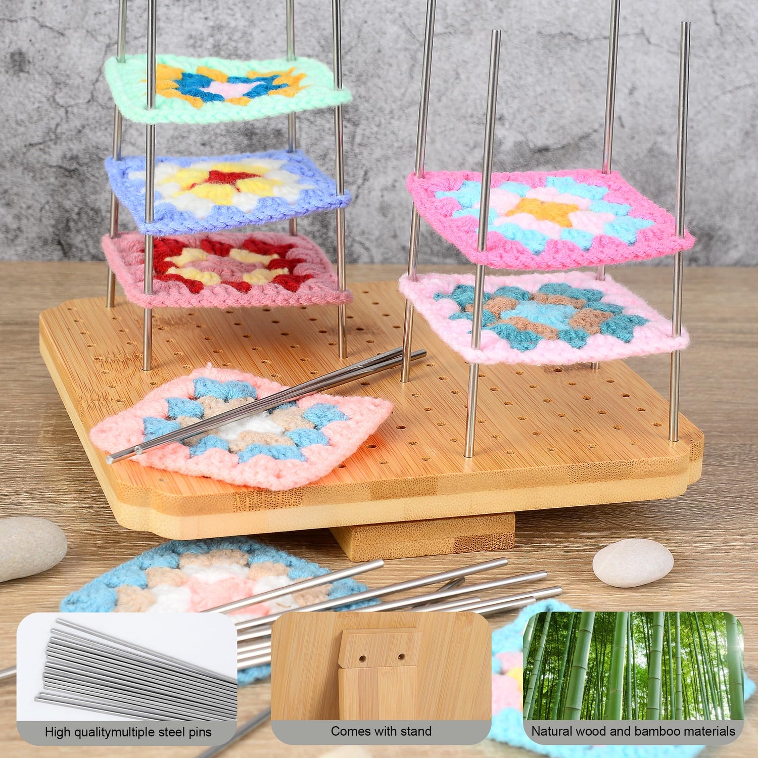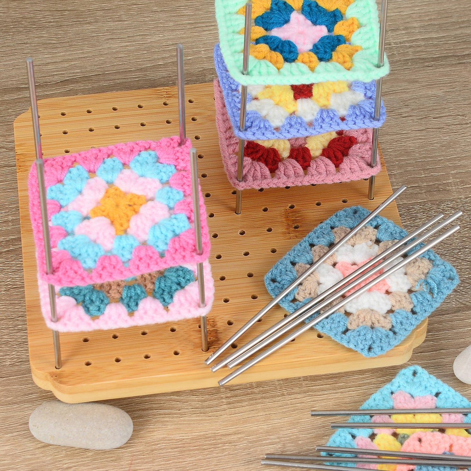 - 【crochet blocking board】: Size: 7.8 inches x 7.8 inches. The blocking pad is made of high-quality bamboo, making it ideal for beginners.