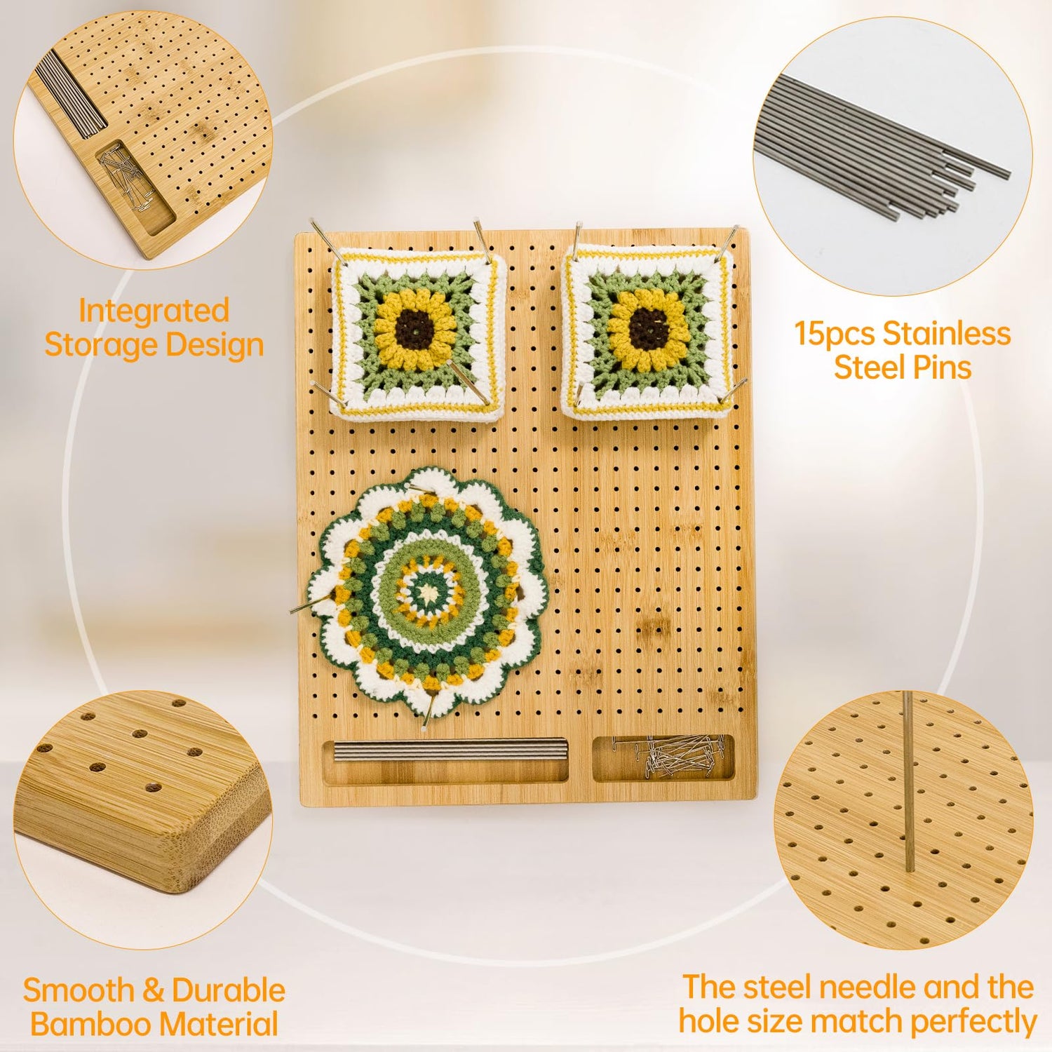 - Great Assistant for Knitting & Crochet Projects: This 14.6*11.8“ knitting blocking board comes with 528 holes of a suitable 0.4-inch spacing, which can help you make precise measurements. 15pcs stainless steel rod pins, each 6 inches long, provide better support and fixation for your granny square work, making the crochet projects shaping process simple and fast.