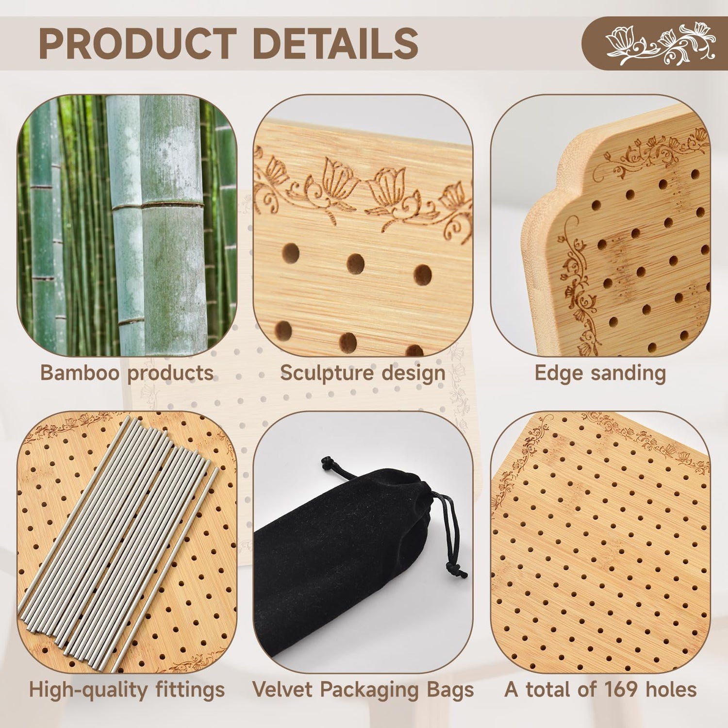 - Engraved print design: The beautiful border features a design based the tulips. We have also developed a new support solution, using a structure with holes punched in the back in combination with 2 steel pegs to support (with 4 rubberized protective caps). This allows the crochet square blocking board to stand more stably and saves storage space