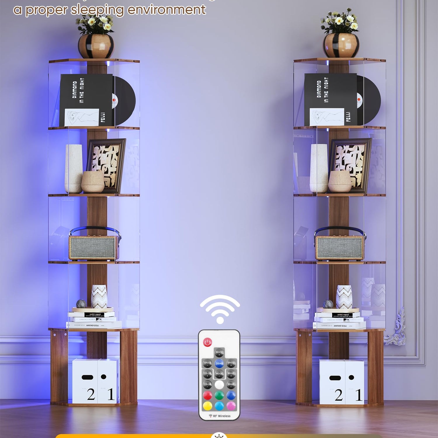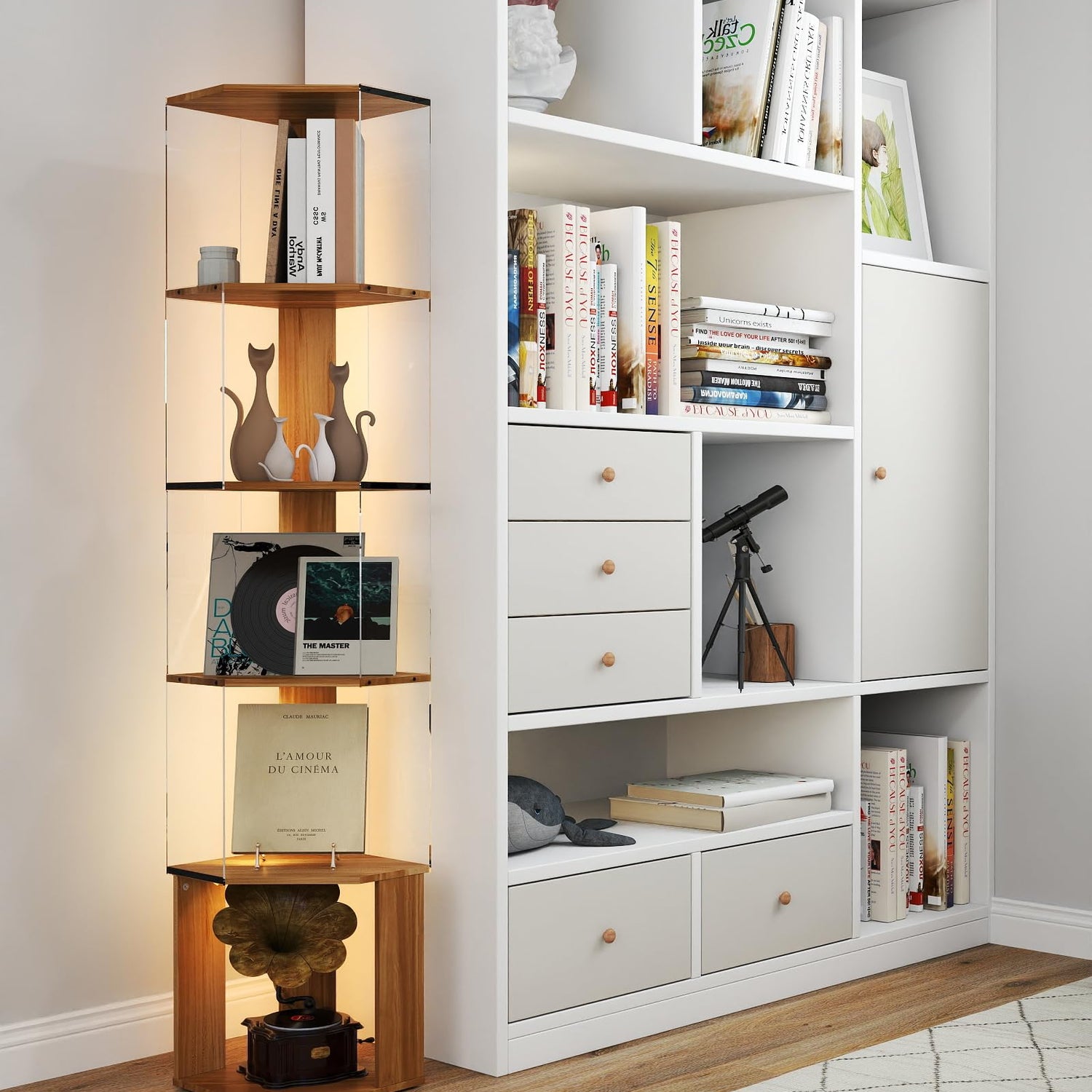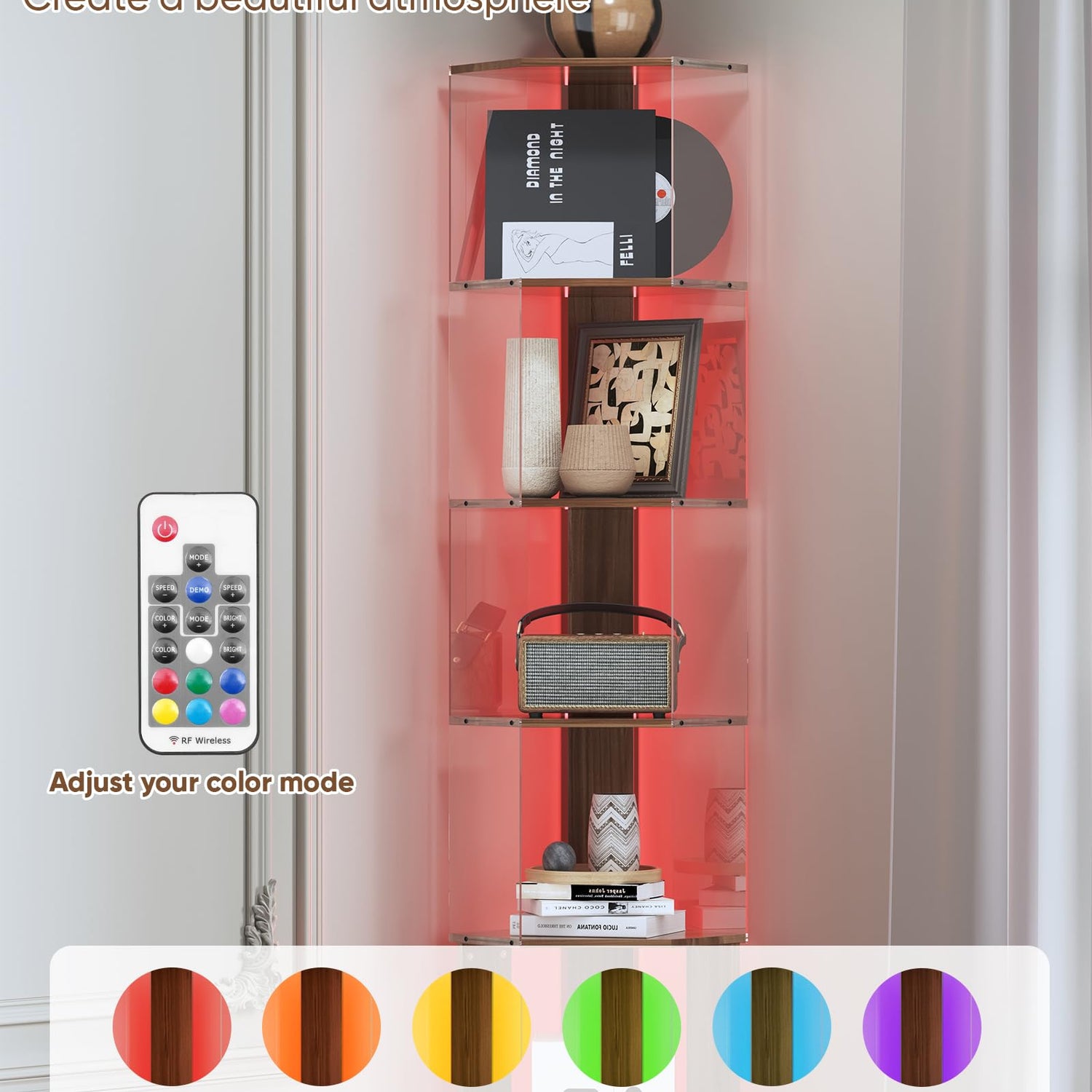 • Multiple Lighting Modes and Adjustable Color Temperature:This smart acrylic corner bookshelf has a variety of brightness modes, you can switch modes and colors between warm and cool (2700K-6500K) at will to make your room and the corner wall shelf complement each other, and corner shelf stand interesting to choose different lighting effects according to your own preferences while you're storing/decorating your room, the corner wall shelves can make your home add an interesting fashion.