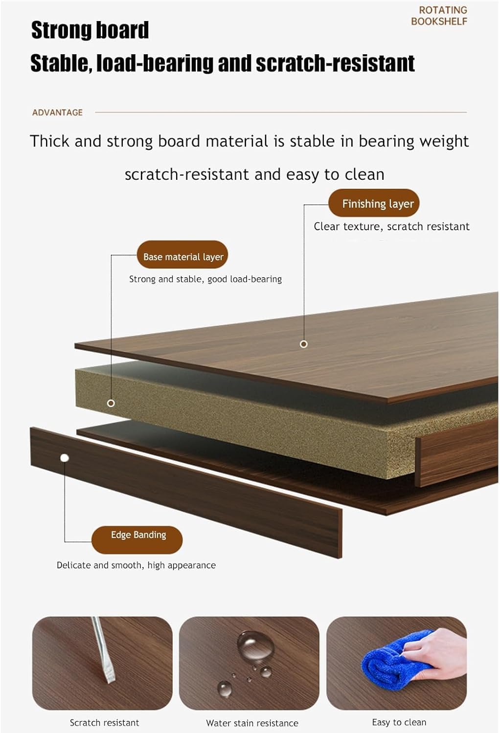 - SMOOTH 360° ROTATING FUNCTIONALITY - Equipped with a turnplate at the base, the rotating bookshelf tower effortlessly spins 360 degrees, enabling easy access to your items with a gentle rotation. The open bookshelf design enhances accessibility and aesthetic appeal, allowing for convenient browsing and showcasing of books and decorative items.