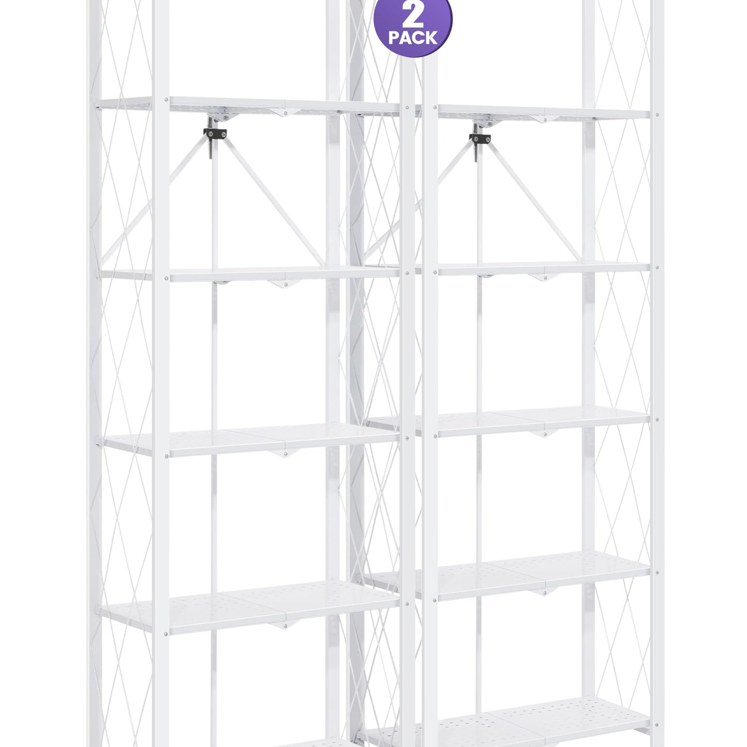 ALANNG 70.7-Inch Folding 6-Tier Metal Bookshelf - Versatile Heavy-Duty Bookcase (White, 2-Pack)