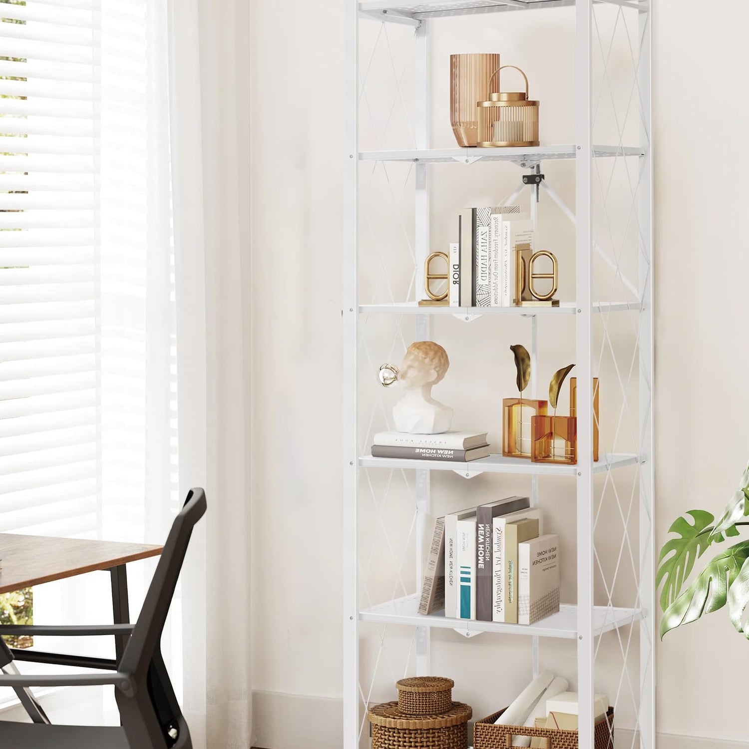 Transform your space with the ALANNG 70.7-Inch Folding 6-Tier Metal Bookshelf—organise, display, and elevate your home or office effortlessly.