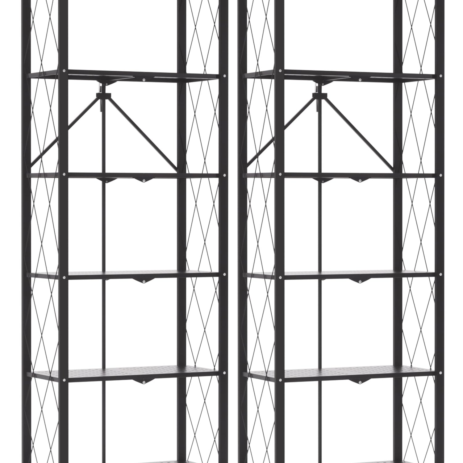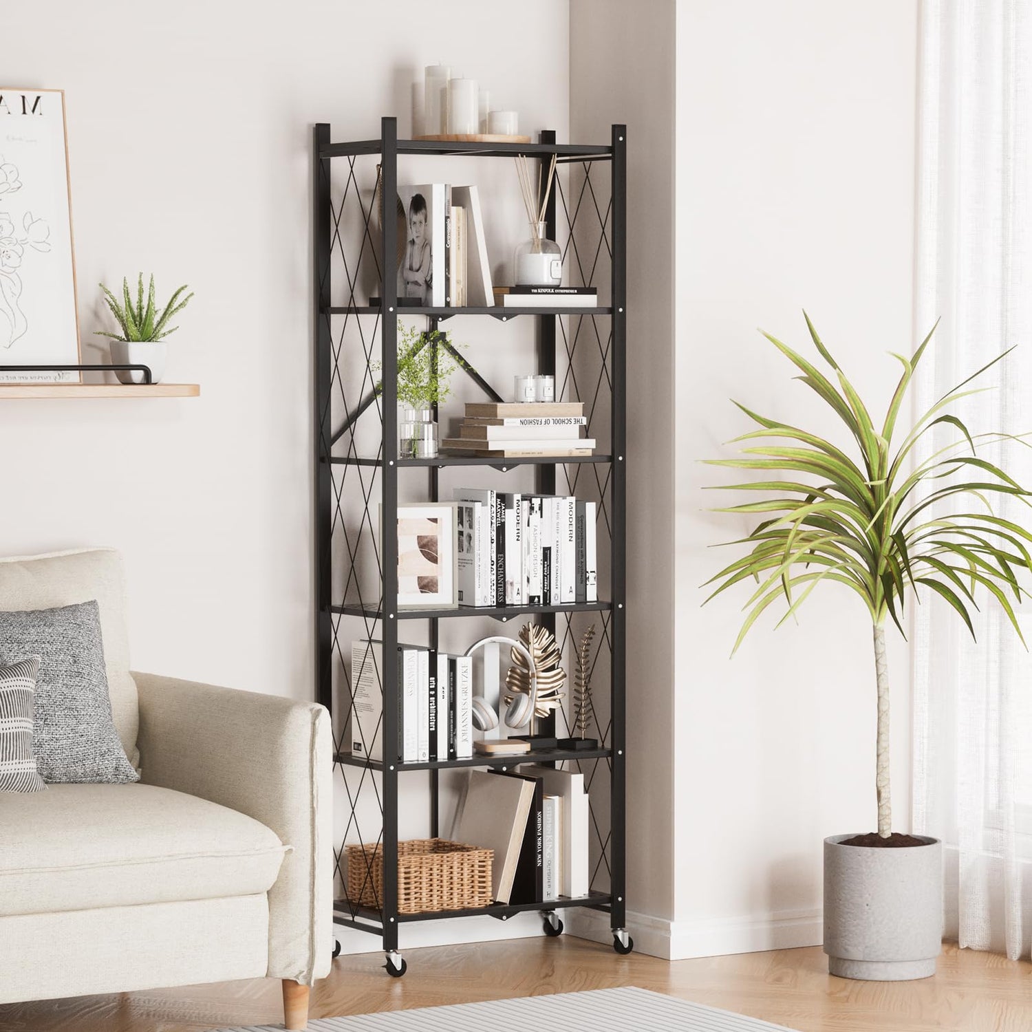 ALANNG 73.6 Inch Folding Bookshelf, 6 Tier Metal Bookcase and Bookshelves, Tall Shelves for Living Room Office Bedroom, Heavy Duty Book Shelve Free Standing Open (Black, 2PACK)