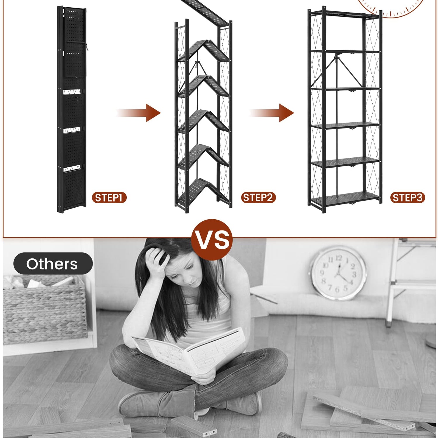 - [Easy to Install] Say goodbye to annoying installation steps. Our tool-free shelving liberates you from the hassle of assembly. Simply unfold it and start using it immediately, allowing you to quickly enjoy the pleasure of organized storage.