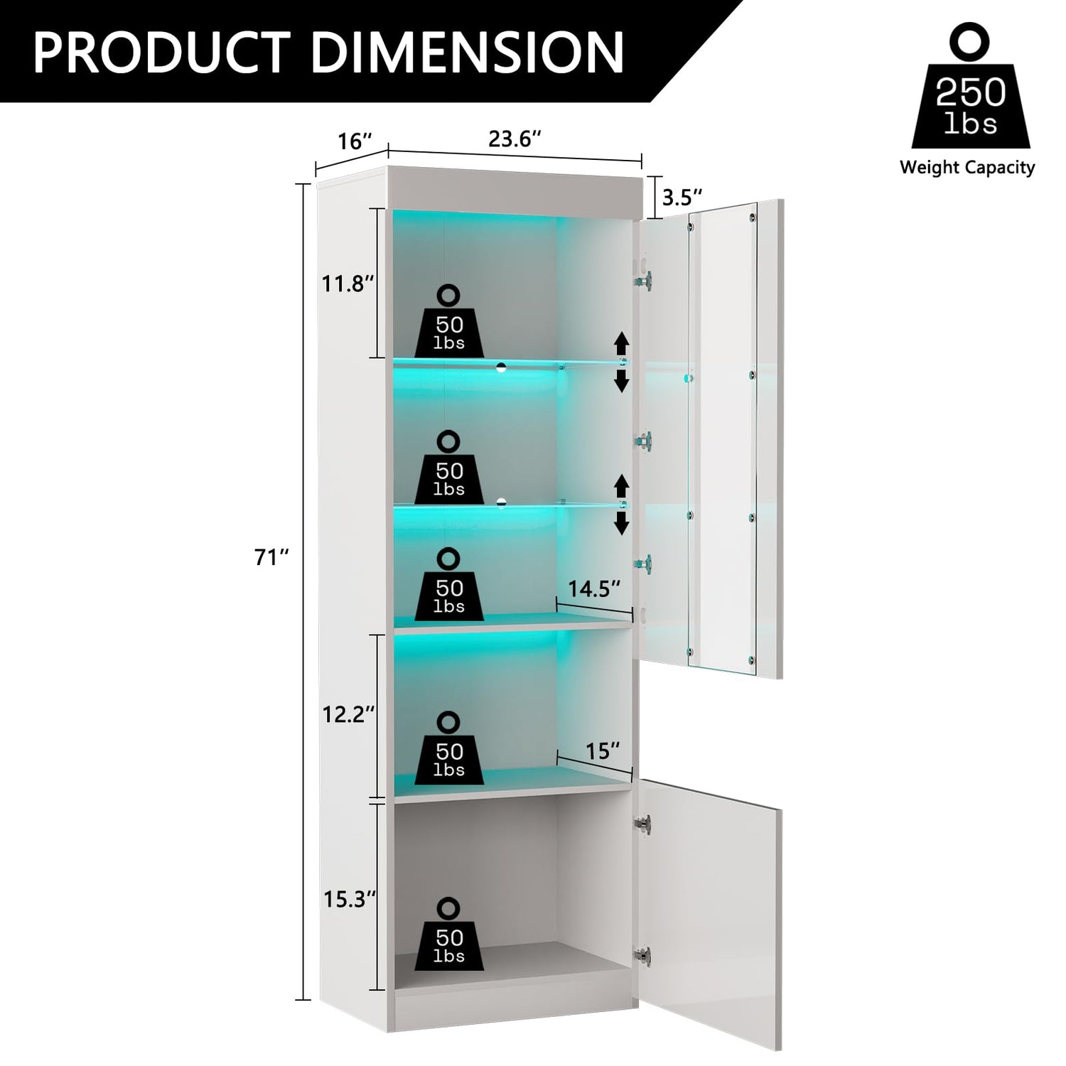 Transform your living space with the AMERLIFE Modern 71in Tall LED Bookcase Storage Cabinet. This set of two cabinets combines sleek modern design with unparalleled functionality.