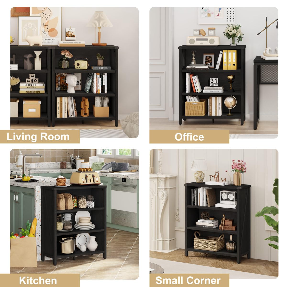 • Multipurpose Bookcase: This etagere bookcase is a ideal solution for organizing your home. Featuring a three-tier open design with two adjustable middle shelves, it meets your various needs and provides ample space for your photo frames, decorations, books, collectibles, and more. With clean, simple lines and a rustic industrial style, this wooden bookshelf seamlessly fits into your living room, entryway, bedroom, kitchen, apartment, office, and beyond.