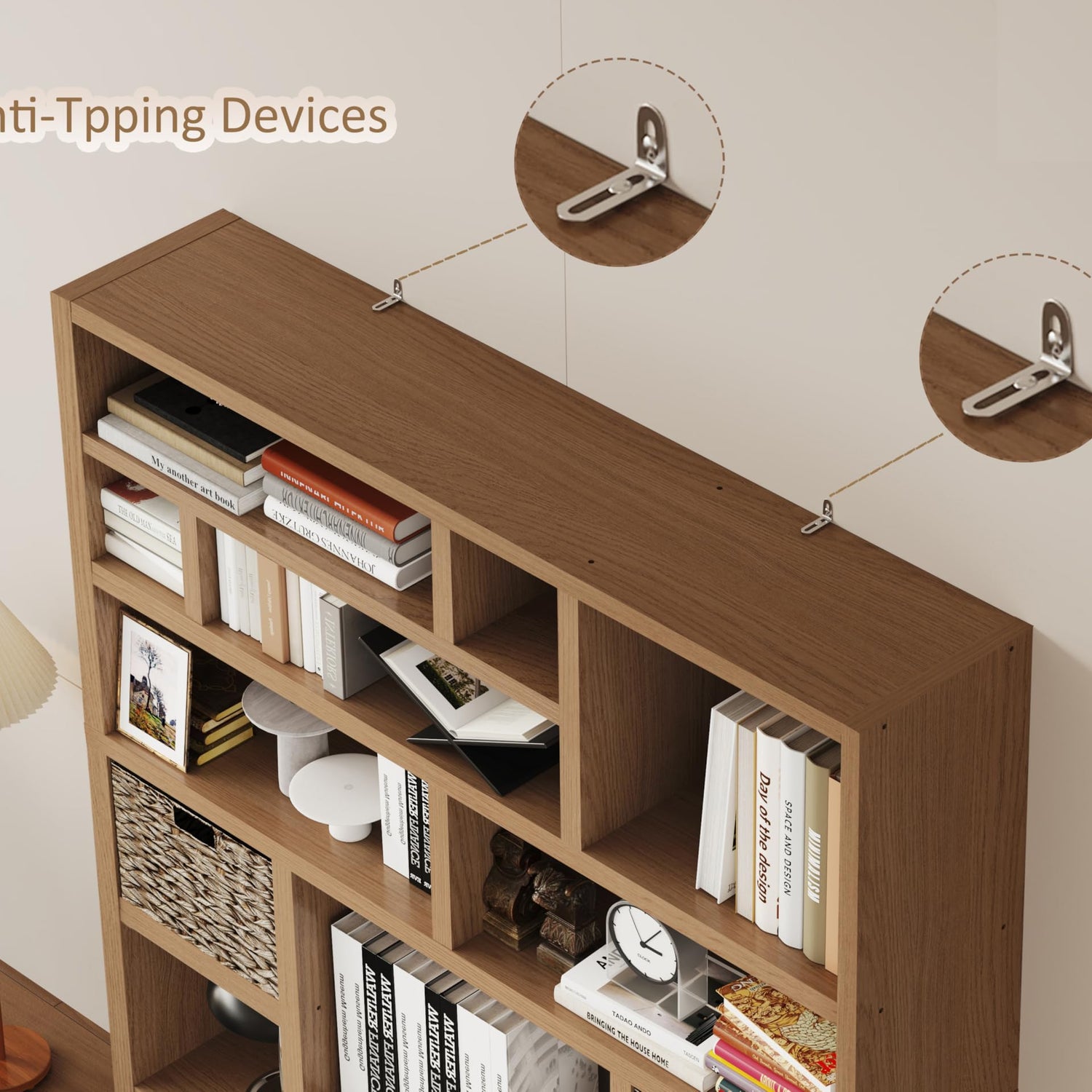- Safety Anti-Tip Design – Equipped with a metal anchoring bar to secure the bookcase to the wall, preventing accidents and ensuring safety for homes with kids or pets.