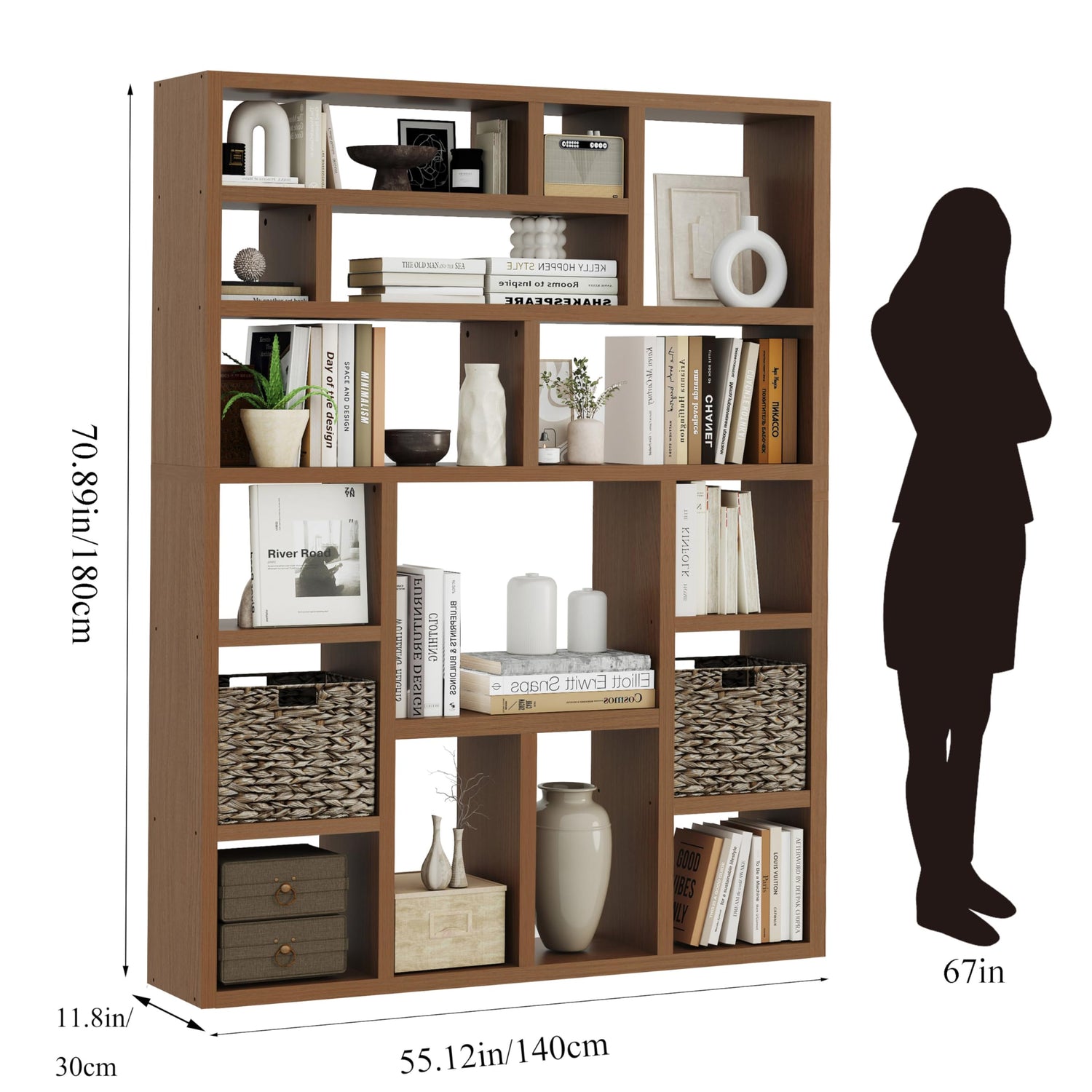 - Spacious & Versatile Storage – (55.12"W x 11.81"D x 70.87"H) Open-concept design blends with any decor style. Use as a bookshelf, room divider, or display organizer for a clutter-free home or workspace. essentials in living rooms, offices, libraries, or bedrooms.